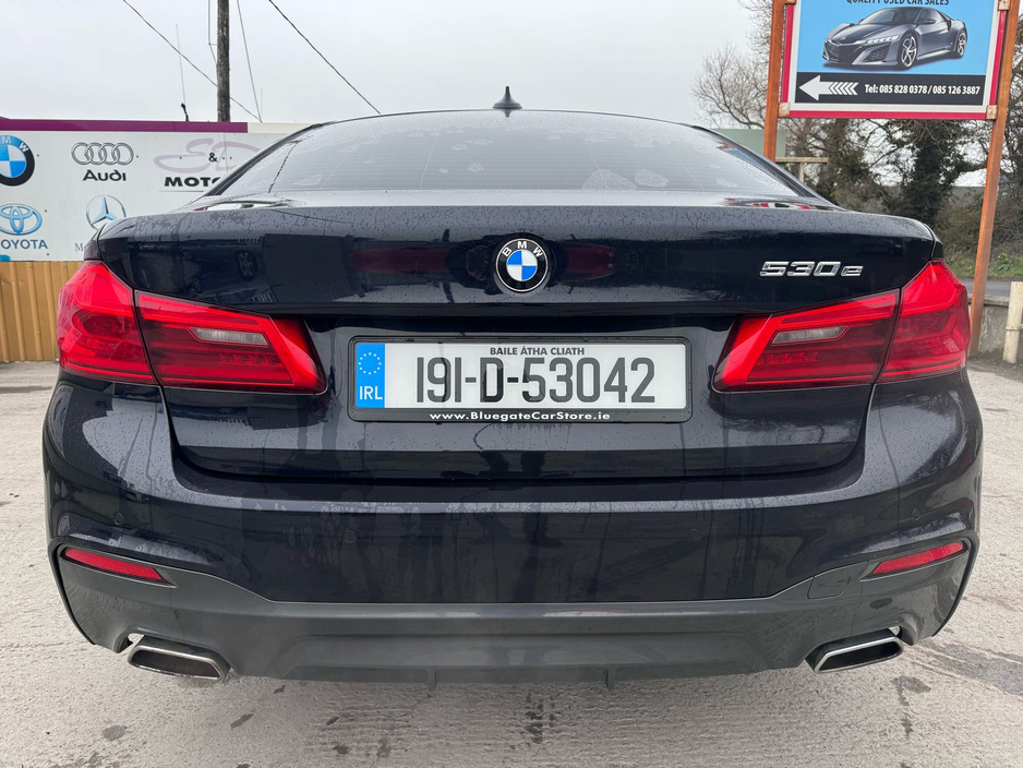 2019 BMW 530e M Sport Auto Petrol Plug-in Hybrid *Vehicle history check * *Finance available * *Warranty available * To book a test drive or to get a video walk around please call us. Nationwide delivery can be arranged. We operate by appointment only. . Alloy wheels, Sports seats, Digital instrument panel, Leather steering wheel, Leather interior, CD, Bluetooth, 12v power outlet, USB connection (front), Touch screen display, Radio, Air conditioning, Armrest, Multi-function steering wheel, Gear shift paddles, Climate control, Rain sensor, Electrically adjustable seats, Electric windows, Heated seats, Dual zone climate control, Keyless entry, Electric side mirrors, Electric handbrake, Auto lights (dusk sensor), LED headlights, Ambient lighting, Daytime running lights, Emergency brake assist, Traction control, Passenger-side airbag, Driver-side airbag, Side airbag, Anti collision system, Immobilizer, Stability control, Remote central locking, Isofix, Seat belt warning, ABS, Central locking, Alarm system, Tyre pressure monitor, Start-stop system, Navigation system, Voice control, Hill hold assist, Front parking sensors, Speed limiter, Rear parking sensors, Remote boot release, Cruise control Central Locking, Electric Windows, Airbag, Cruise Control, Fog Lamps, Centre Armrest, Multi-function steering wheel, Satellite Navigation, Traction Control, Anti-Theft System, Parking Sensors, Bluetooth, EBD, Isofix, Active Safety Braking / City Brake / Collision Alert, Stop/Start Button, Touch Screen Media Control, External Devices Connectivity, Cup holders, Remote boot/hatch/rear door release, Stability control