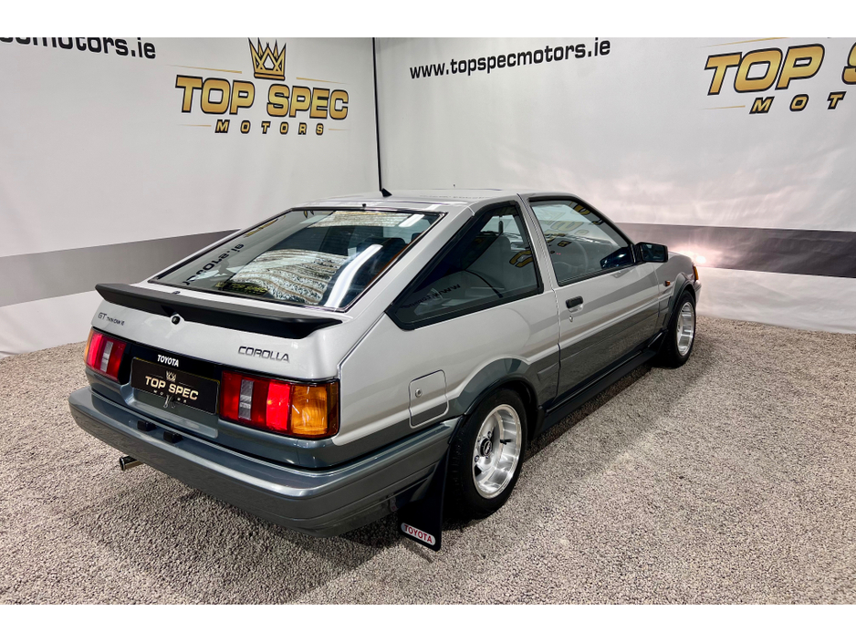 1986 Corolla GT Coupe AE86 THIS CAR IS AFTER A FULL NUT AND BOLT BARE SHELL REBUILD Most sought after colour Silver Over graphite A Full documentation of the build that took over 5 years to do is all in a picture portfolio along with invoices and receipts for all the new parts. Absolutely every bit of the running gear is brand new including a full engine rebuild with all new parts,same for the gear box,rear axle,breaks,shocks, suspension etc For more information and details of the new build call sales NO OFFERS OR SWAPS Viewing is by appointment only Stunning car in every way Check us out on Facebook for more info top spec motors and follow us on snap chat Top Spec Motors, Newmarket Co. Cork The prestige and performance specialists Click the link below for more info http//www.topspecmotors.ie Cork,s Used High Spec Car, Commercial and 4x4 Specialists Card Machine available on site Viewing 7 Days A Week and after 6pm to 11pm by appointment only *FREE NATIONWIDE DELIVERY ANYWHERE* From our forecourt to your front door for no extra cost Www.topspecmotors.ie
