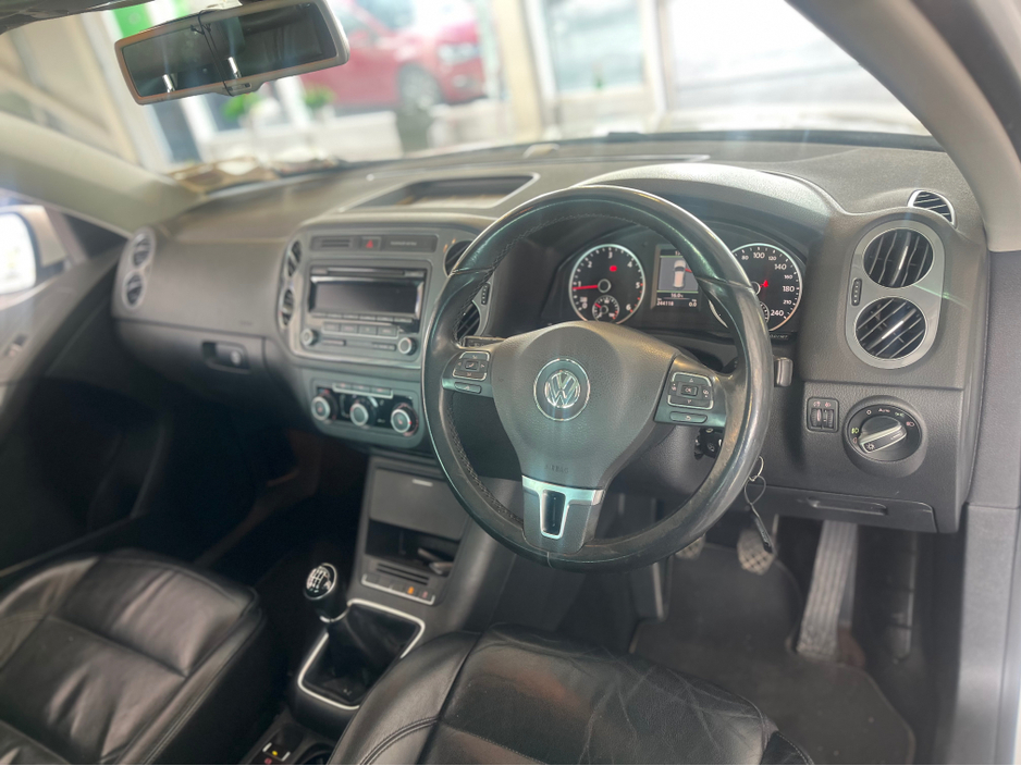 Volkswagen Tiguan 2.0 Tdi 110 bhp Sport Manual 6 speed 2012 In excellent condition throughout New Nct just done Online purchase available Online sales Online trade in valuation Online finance approval You can also request a walk around video of any car to be sent directly to you, Finance available, to apply for finance visit Roskeencars.ie just serviced and professionally valeted All our prices include VRT, servicing, new NCT, and warranty as standard. Brief list of spec Aircon Auto lights Auto dimming rearview mirror Bluetooth connection Cruise control Daytime running lights Dual zone climate control Electric handbrake Heated mirrors Heated seats Isofix Leather multifunction steering wheel LED interior lighting Multimedia media unit Park assist Parking sensors Three spoke steering wheel For more info please call 0873500350 Central Locking, Electric Windows, Airbag, Cruise Control, Fog Lamps, Privacy Glass, Centre Armrest, Multi-function steering wheel, Roof Rails, Traction Control, Metallic Paint, EBD, Isofix, Active Safety Braking / City Brake / Collision Alert, Stop/Start Button, External Devices Connectivity, Cup holders, Remote boot/hatch/rear door release, Stability control