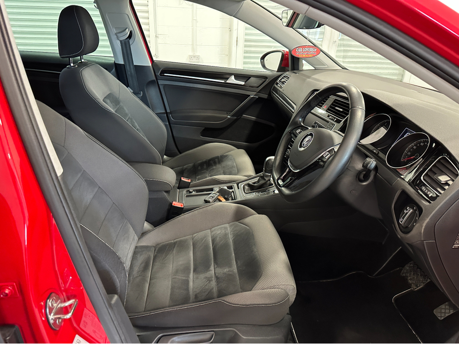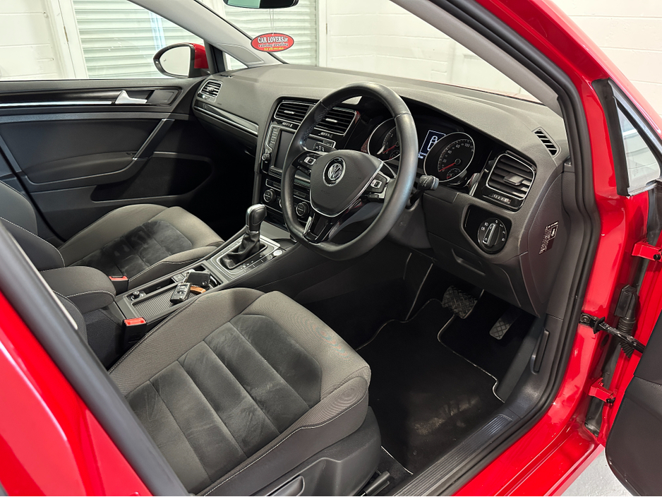 WWW.DENISDARCYCARS.IE VW/AUDI SPECIALISTS. 171 VOLKSWAGEN GOLF 1.4TSI HIGHLINE DSG IN TORNADO RED, SPEC INCLUDES, 17'' ALLOYS, REMOTE LOCKING, REVERSING CAMERA, CAR PLAY ANDROID AUTO MIRROR LINK, XENON LIGHTS, AUTO LIGHTS/WIPERS, ARMREST, MULTIFUNCTION LEATHER STEERING WITH PADDLE SHIFT, ADAPTIVE CRUISE CONTROL,CLIMATE AC, BLUETOOTH MEDIA, AUTO HOLD, AMBIENT INTERIOR LIGHTING, TWO KEYS, SERVICE HISTORY, BLACK PIANO DASH INLAYS. COMES SERVICED AND NCT'D. WE ARE LOCATED JUST OFF THE M3 MOTORWAY EXIT 9, 20 MINS FROM DUBLIN..