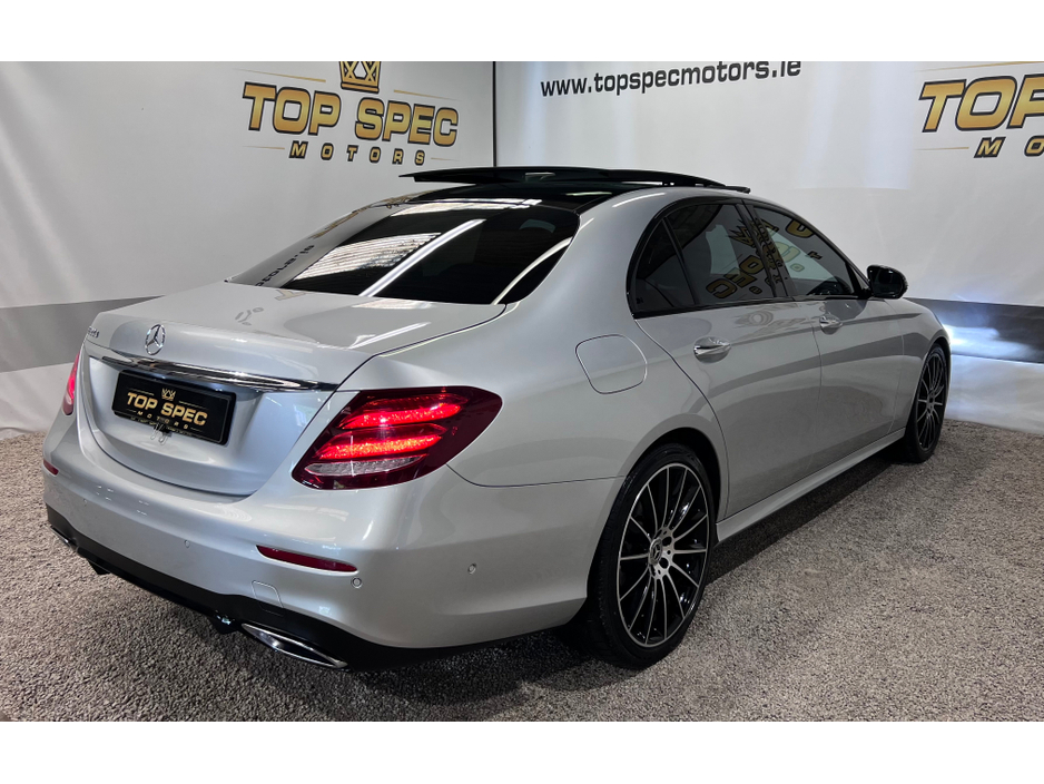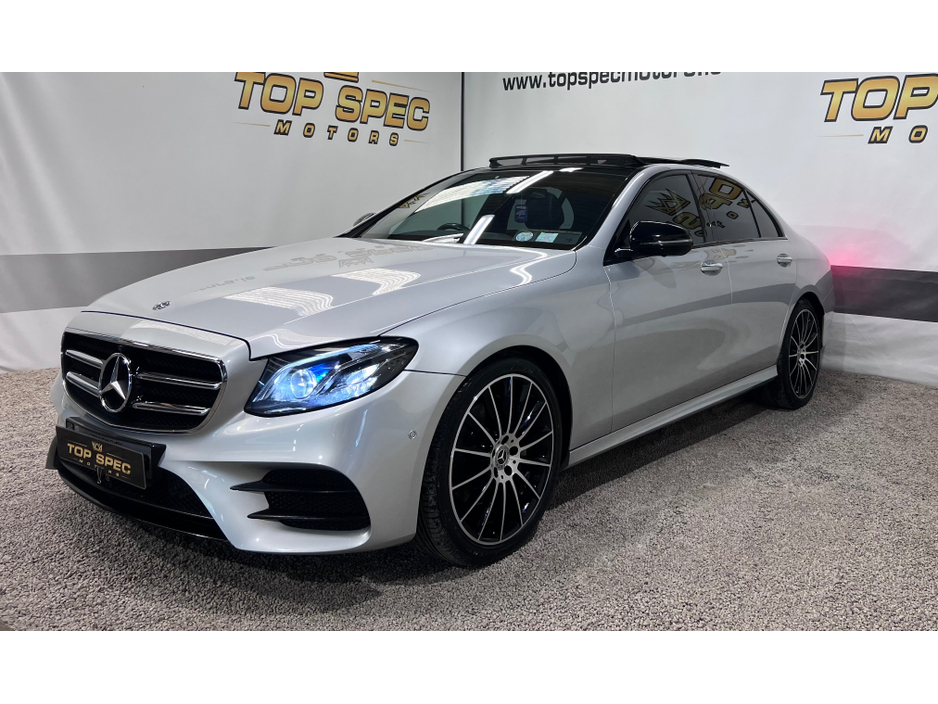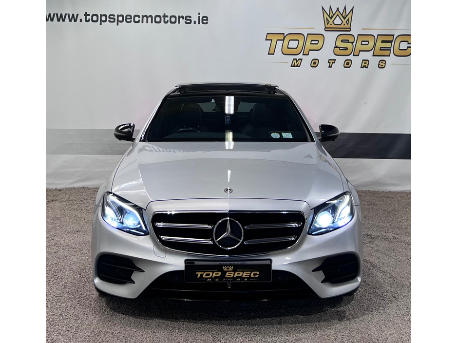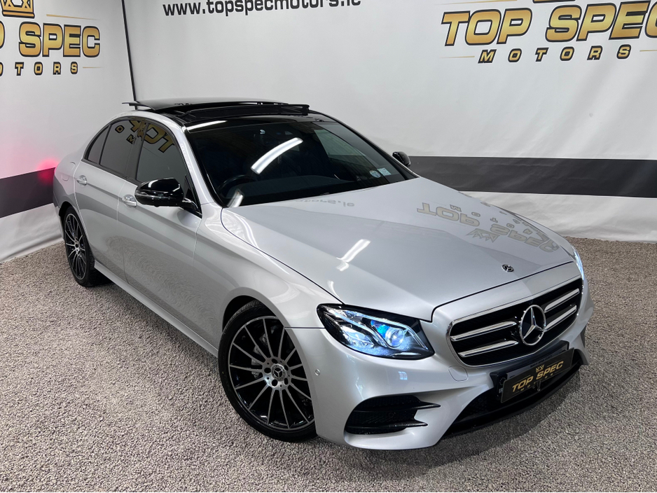 2020 Mercedes E300 AMG Night Ed Premium This is an absolutely stunning 2020 Mercedes E300 AMG Night Edition Premium 2ltr diesel automatic Finished in unmarked Silver/Grey Car is registered on a Dublin number plate Only covered 73k Warranted miles ABSOLUTELY FULLY LOADED WITH EVERY FACTORY EXTRAS Panoramic tilt and slide sunroof, 360 cameras all round, Xenon headlights, Nct and taxed Upgrade sound system Memory seats Factory amg alloys and tyres Full black leather interior, Electric boot, Aircon Heated seats, DAB Radio, Flappy paddles, Sat Nav, 2 keys Multifunction steering wheel, A/C, Bluetooth, Ambient lighting Electric windows etc! An absolute Stunning car in every way Call sales on 0871925200 for more info and price Strictly appointment only Now accepting cryptocurrency payments Check us out on Facebook for more info top spec motors and follow us on snap chat Finance & Warranty Available Top Spec Motors, Newmarket Co. Cork The prestige and performance specialists FULL 100% FINANCE CAN BE ARRANGED WITHIN 1 HOUR ARRIVE AND DRIVE THE SAME DAY Cork,s Used High Spec Car, Commercial and 4x4 Specialists Card Machine available on site Viewing 7 Days A Week and after 6pm to 11pm by appointment only *FREE NATIONWIDE DELIVERY ANYWHERE* From our forecourt to your front door for no extra cost Click the link below for more info Www.topspecmotors.ie Central Locking, Electric Windows, Airbag, Sunroof, Privacy Glass, Centre Armrest, Multi-function steering wheel, Satellite Navigation, Traction Control, Anti-Theft System, Parking Sensors, Bluetooth, EBD, Isofix, Panoramic Sunroof, Active Safety Braking / City Brake / Collision Alert, Stop/Start Button, Touch Screen Media Control, External Devices Connectivity, Cup holders, Remote boot/hatch/rear door release, Stability control