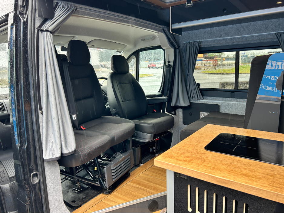 **This is a BRAND NEW build!** Top quality build by Camper Vamper 1,540 kms from new!! Literally AS NEW throughout with all of the correct specs and options as listed below. *Under manufacture warranty until 2026* -This is a gas-free vehicle. Cooking is via an induction hob, cooling of the fridge is via 12v compressor fridge and night/water heater used diesel as its power source. Therefore no concern over gas leaks, no carrying around gas heavy gas bottles and substantially improved off grid capabilities. -The lithium power unit with inverter ensures huge power storage and mains 220v electricity no matter where you are. Ideal for those requiring special equipment at night time and those seeking off-grid useability. -The subtle yet stylish exterior design is ideal for stealth camping in urban areas. Main features -4/5 Berth -5 Seatbelts -Transverse double bed in the rear -Large double bed area in the elevating roof -Convertible single bed in the rear double seat area -Length 5.99m -Width 2.05m -Height 2.7m (excluding elevating roof) -2.2L Peugeot Boxer Professional chassis -6 speed manual transmission -Right hand drive Features -1x Clayton Power Unit (160ah Lithium/3,000w Inverter) -EHU Mains Hook Up -3x LED Touch/Dimmable Spotlights Main Cab -1x LED Touch/Dimmable Spotlight Bathroom -1x LED Touch/Dimmable Spotlight Garage -2x Double 240v Sockets & 1x USBCA Socket -Touchscreen Control Panel -Kitchen Unit 1x Drawer & Cupboard and 1x Overhead Cabinet -Wood Worktop -12v 50L Compressor Fridge with Freezer Compartment -2-Burner Induction Hob & Separate Sink -2x Bonded Privacy Window (1x Opening, 1x Fixed) with Vanshades Blackout Blinds -Truma Combi D4E Heating & Hot Water System -Internal Fresh Water Tank -External Shower Standard features -Central Locking -Cruise Control -Bluetooth DAB stereo -Multi function steering wheel -Daytime running lights, integrated in headlights -Driver & Passenger Airbags -Cab air-con -Electric & Heated wing mirrors -Truma Combi diesel heating -Immobiliser -Power Steering -Swivel Seats (Driver & Passenger double seat) We do our utmost to ensure vehicle descriptions are accurate, however mistakes can occur. Please ensure options and accessories are crosschecked at point of viewing. Price listed includes -Comprehensive handover demonstration -2 sets of keys -Manufacturer warranty -This is a unique opportunity to own a top quality campervan which is priced to sell. -Good quality trade ins welcome. We are an award winning, SIMI registered dealership who pride ourselves in providing a customer friendly approach to buying a vehicle. We are a registered credit intermediary. Finance can be arranged on this vehicle. Terms and conditions apply. Please contact us for more information. This vehicle is available to view at our premises in Roscommon town, appointments only. Please give us a call in advance to arrange a time. Air Conditioning, Air bags, Anti theft system, Bluetooth, Captain Seats, Central locking, Cruise control, Driver Airbag, Dual passenger seat, Electric mirrors, Electric windows, Fog lights, Insulated, Internal shelving, Manufacturers warranty, Multi Function Steering Wheel, Multi Function Steering Wheel Controls, Parking Sensors, Power steering, Privacy Glass, Remote Control Central Locking, Sat nav, Spare Key, Spotlights, Tinted windows, Traction control (ASR)
