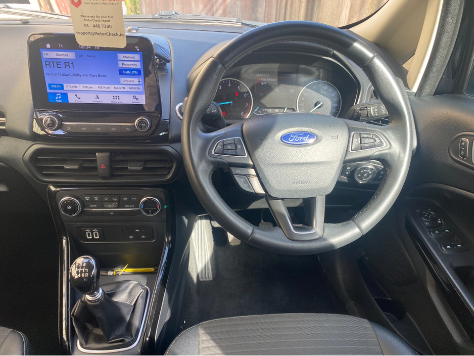 High spec Ecosport just arrived,Finance available,Call Niall or Dave to register your interest. Central Locking, Immaculate condition, Electric Windows, Airbag, Electric Mirrors, Fog Lamps, Immobiliser, Automatic Wipers, Automatic Lights, Centre Armrest, Luggage Cover, Multi-function steering wheel, Roof Rails, Satellite Navigation, Traction Control, Metallic Paint, Multiple Air Bags, Anti-Theft System, Parking Sensors, Bluetooth, Remote Central Locking, EBD, Folding rear seats, Six speed transmission, Isofix, History Checked, Finance Checked, Reversing Camera, Active Safety Braking / City Brake / Collision Alert, Stop/Start Button, Daytime Running Lights, External Devices Connectivity, Cup holders, Remote boot/hatch/rear door release, Stability control