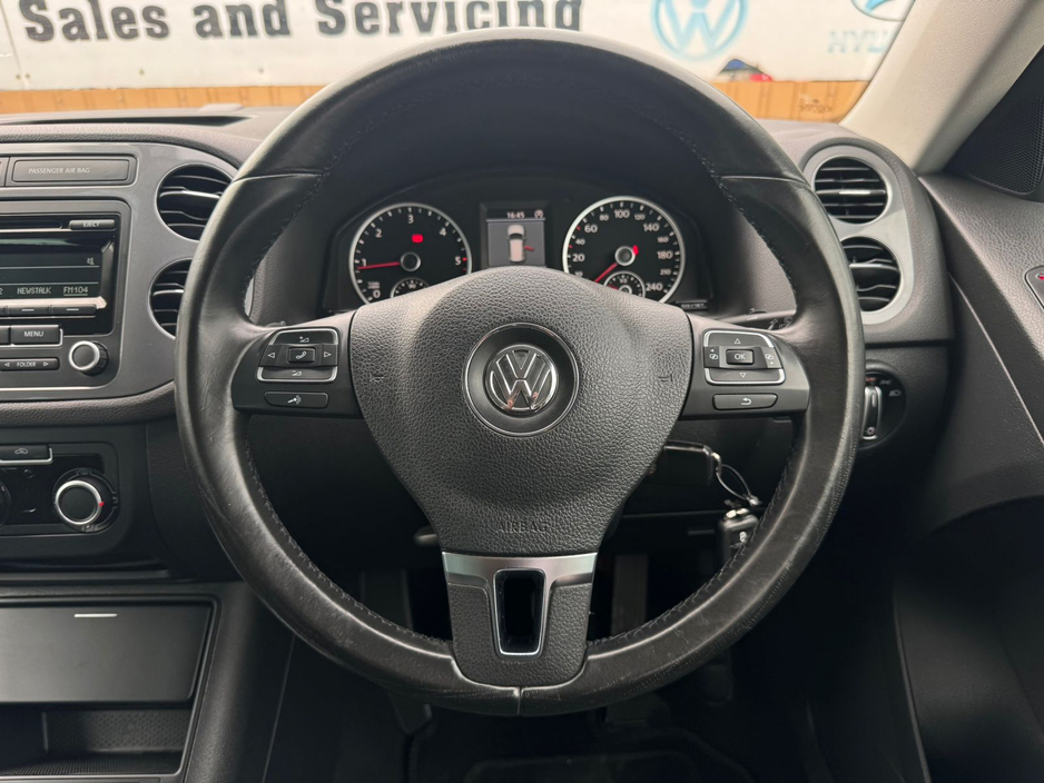 2013 VW Tiguan 2.0TDI 6 Speed Manual *Vehicle history check * *Will be sold with new NCT test and service * *Warranty available * To book a test drive or to get a video walk around please call us. Nationwide delivery can be arranged. We operate by appointment only. Alloy wheels, Leather steering wheel, Tinted windows, CD, 12v power outlet, Radio, Air conditioning, Lumbar support, Armrest, Multi-function steering wheel, Keyless entry, Spare tyre, Electric side mirrors, Electric handbrake, Electric windows, Daytime running lights, Emergency brake assist, Traction control, ABS, Passenger-side airbag, Central locking, Driver-side airbag, Side airbag, Immobilizer, Stability control, Remote central locking, Isofix, Tyre pressure monitor, Start-stop system, Hill hold assist, Roof rails, Remote boot release Central Locking, Electric Windows, Airbag, Fog Lamps, Privacy Glass, Centre Armrest, Multi-function steering wheel, Roof Rails, Traction Control, Metallic Paint, EBD, Isofix, Active Safety Braking / City Brake / Collision Alert, Stop/Start Button, External Devices Connectivity, Cup holders, Remote boot/hatch/rear door release, Stability control