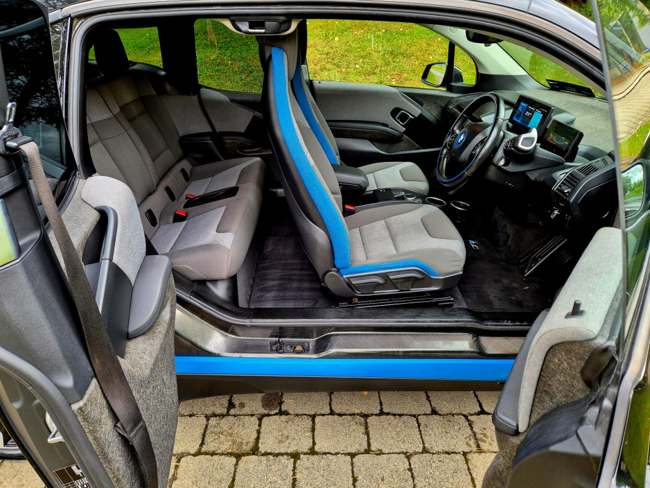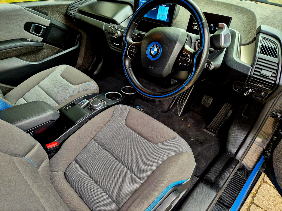 The BMW i3s is a sportier, higher-performance variant of the standard BMW i3, featuring a wider track, a lowered and stiffer suspension, and 20-inch wheels with wider tires for improved handling and a more aggressive stance. It offers increased power (184 hp) and torque (270 Nm) compared to the standard model, delivering a more dynamic driving experience. The i3s retains the innovative "LifeDrive" carbon-fiber architecture and electric powertrain of the original i3 but with enhanced performance and sport-oriented styling cues like black chrome elements and supports larger 50kw Charging. Central Locking, Electric Windows, Airbag, Rear Spoiler, Centre Armrest, Multi-function steering wheel, Satellite Navigation, Traction Control, Anti-Theft System, Parking Sensors, Bluetooth, EBD, Isofix, Active Safety Braking / City Brake / Collision Alert, External Devices Connectivity, Cup holders, Remote boot/hatch/rear door release, Stability control