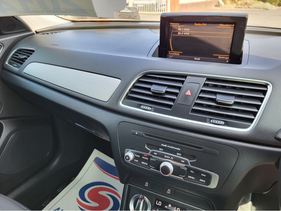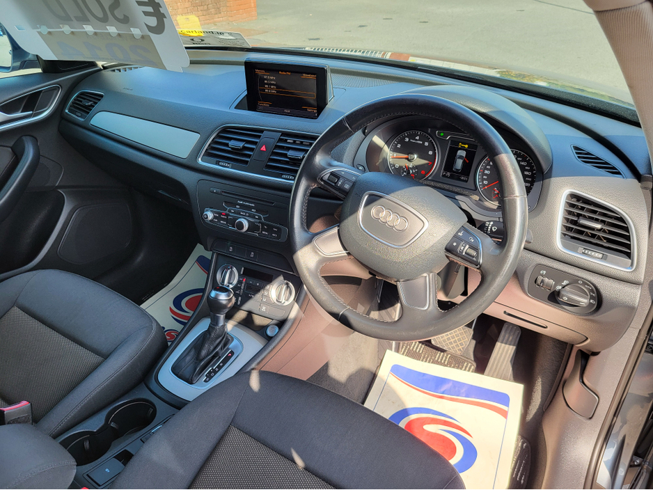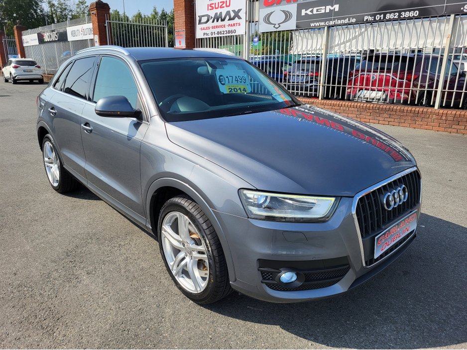 Just landed into stock Audi Q3 1.4 TFSI S-Tronic Sport 2014 (142) Auto comes with. -2yr warranty -New NCT Pass -Fully serviced -Fully valeted -Call sales 01-8623860 Ext 1 -WhatsApp 085-8009571 -carlanddublin@gmail.com -Carland Est.2007 -SIMI Approved Dealers -Main Franchise dealers -Road tax just €200 -Finance available x10 banks -Eircode K67 AR55 -18" Sport wheels Air Conditioning, Central Locking, Immaculate condition, Electric Windows, Airbag, Alarm, Alloy Wheels, Electric Mirrors, Fog Lamps, Immobiliser, Rear Spoiler, Privacy Glass, Automatic Lights, Centre Armrest, Climate Control, Metallic Paint, Multiple Air Bags, Anti-Theft System, Bluetooth, Remote Central Locking, Folding rear seats, Isofix, Daytime Running Lights, Cup holders, Remote boot/hatch/rear door release