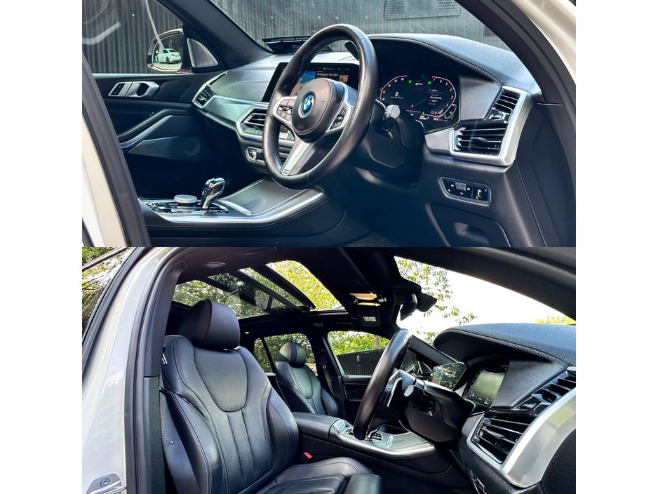 OVER €10K WORTH OF OPTIONS - BEST VALUE X5 45E FOR SALE IN IRELAND - REGISTERED ON THE COUNTY OF YOUR CHOICE At Cieran Mc Connon Car Sales we are delighted to offer for sale Irelands best value - 2021 (212) BMW X5 45E MSPORT PRO EDITON 390BHP which is finished off in the ever sought after white paintwork which is tastefully contrasted with brand new 22" alloy wheels (Included in price) This jeep also benefits from a brand new full M-Performance body kit & is of a massive spec, some of our favourites includes Bowers & Wilkins Diamond Sorround Sound audio €5,908.60 package Sky Lounge Panoramic sunroof €2,823 Driving Assistant Professional €1,980 Heads up display Extended ambience package 360 degree camera Apple Car Play Retractable towbar Upgrade blue Brembo brake system This X5 is also presented with a full BMW Idrive service history - two keys & full motorcheck.ie report. Further spec includes Indv. high-gloss shadowline- extended I-Drive system Professional Sat-Nav Bluetooth Digital cockpit Air-Con USB/AUX connectivity Park distance control Ambient lighting package & so much more! Please WhatsApp 0877069707 to schedule an appointment - trade in appraisal - video presentation (VIEWING BY APPOINTMENT ONLY) Central Locking, Electric Windows, Airbag, Fog Lamps, Rear Spoiler, Centre Armrest, Multi-function steering wheel, Roof Rails, Satellite Navigation, Traction Control, Anti-Theft System, Parking Sensors, Bluetooth, EBD, Isofix, Active Safety Braking / City Brake / Collision Alert, Stop/Start Button, External Devices Connectivity, Cup holders, Remote boot/hatch/rear door release, Stability control