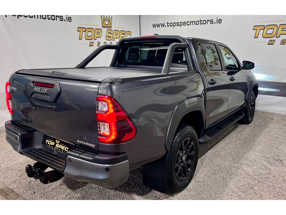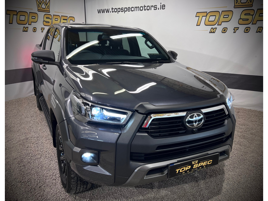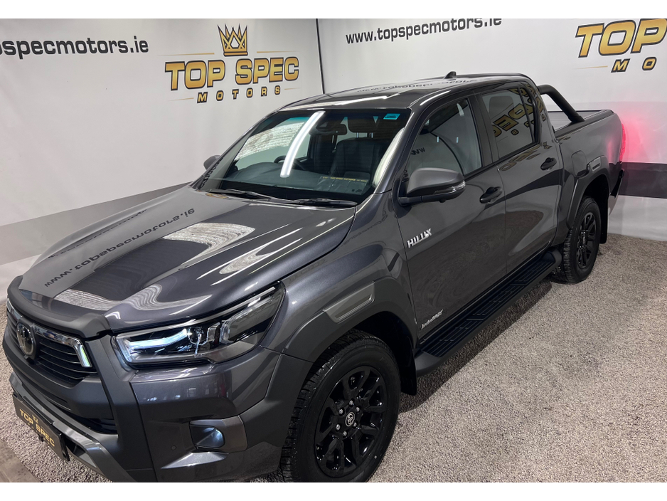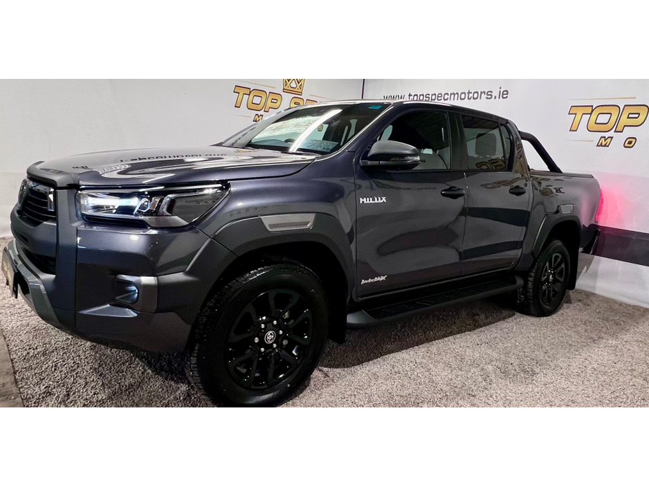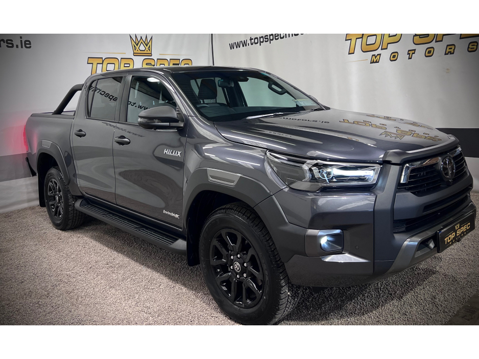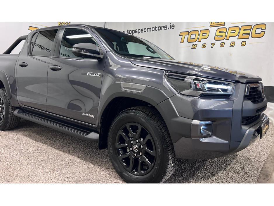 2025 Toyota Hilux Invicible X Auto Double Cab BRAND NEW 2025 with only delivery miles Absolutely fully loaded top spec 2.8tdi 6 speed Auto gearbox 4 wheel drive 18 inch Black Alloy wheels LED lights, Black leather interior, air conditioning, heated front seats, touch screen 8 inch monitor with built in navigation, apple car play, Android Auto, cruise control, Rear Liner Tow bar. optional side bars and rear roll top cover available. Stunning Jeep in every way Price €53400 Call sales on 0871925200 Check us out on Facebook for more info top spec motors and follow us on snap chat Appointment only Finance & Warranty Available Call sales on 0871925200 Top Spec Motors, Newmarket Co. Cork The prestige and performance specialists FULL 100% FINANCE CAN BE ARRANGED WITHIN 1 HOUR ARRIVE AND DRIVE THE SAME DAY Click the link below to apply for finance and more info http//www.topspecmotors.ie/finance/ Cork,s Used High Spec Car, Commercial and 4x4 Specialists trade in welcome Card Machine available on site Viewing 7 Days A Week and after 6pm to 11pm by appointment only Price includes VRT, NCT, Full service, professional Valet and Warranty *FREE NATIONWIDE DELIVERY ANYWHERE* From our forecourt to your front door for no extra cost