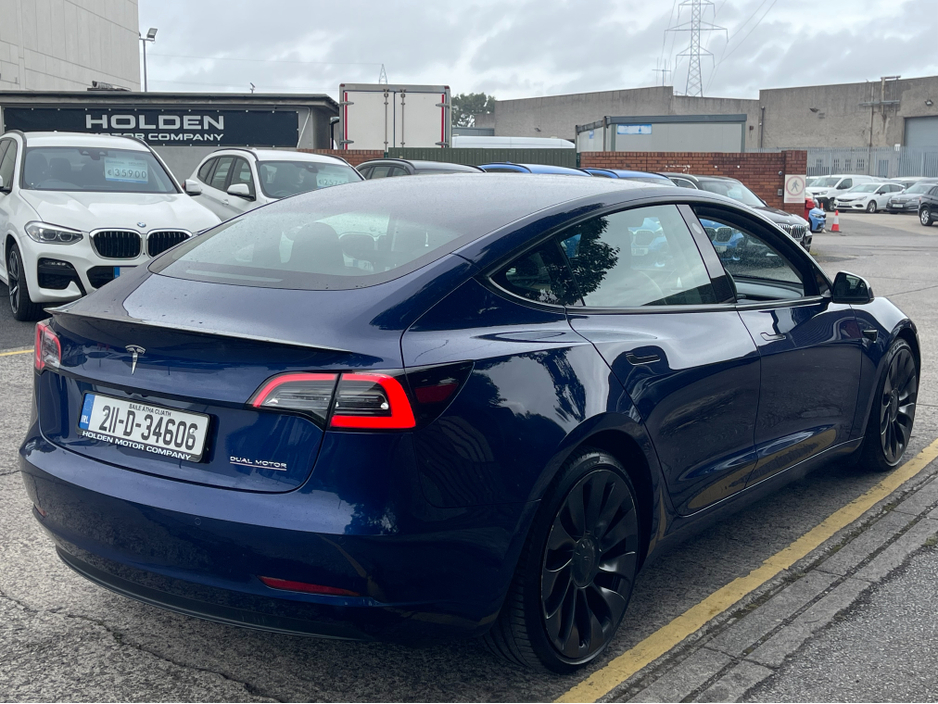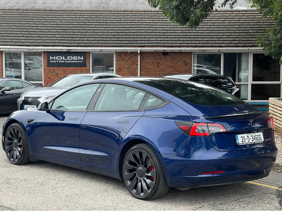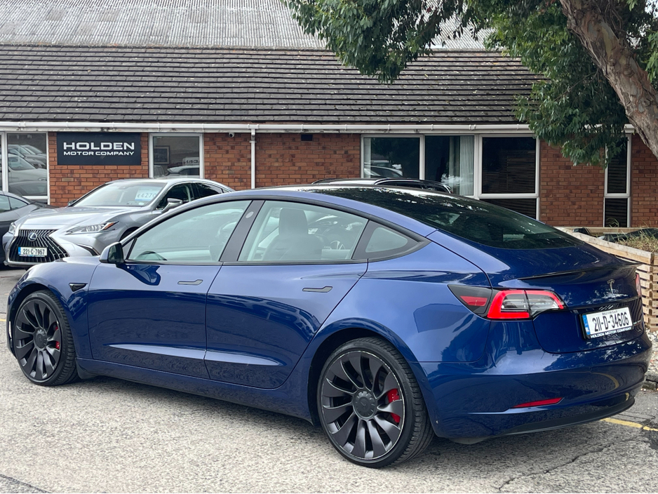 2021 Tesla Model 3 Performance Dual Motor AWD Mileage 92,000 km Range Up to 500 km Condition Excellent Keys 2 Included A high-performance, all-electric sedan delivering instant acceleration, advanced technology, and premium comfort. This Model 3 Performance combines cutting-edge features with everyday practicality. Performance & Drive * Dual Motor AWD (All-Wheel Drive) * Model 3 Performance Trim * Track Mode * Adaptive Headlights * Auto Pilot & Lane Assist * Front Assist & Park Assist * Tyre Pressure Monitoring System Interior & Comfort * Panoramic Glass Roof * Black Leather Interior with Ambient Lighting * Electric Seats with Memory & Electric Boot * Heated Seats (All) & Heated Steering Wheel * Wireless Phone Charger * Electric Steering Wheel Adjustment * Climate Control Air Conditioning * Cabin Overheat Protection Technology & Safety * Wide Touchscreen Multimedia Display * SatNav, Bluetooth & Apple CarPlay * Dashcam, Rear & Side Cameras * Auto Hold & Auto Lights * Voice Control This Tesla Model 3 Performance offers thrilling electric driving with a spacious, high-tech interior and a strong 500 km range. A perfect blend of speed, luxury, and efficiency. Here at Holden Motor Company we are a family run business with a friendly and knowledgeable sales team. We aim to stock a wide range of over 100 carefully selected premium used cars all sourced directly from main dealerships here in Ireland and the UK. We aim to supply all our cars at the most competitive prices in the country. Extended warranty available on certain makes and models. Delivery can be arranged throughout the country. Each of our retail cars comes with a detailed history report and fully serviced or health checked by a network of independent mechanics, a valid NCT and valeted prior to collection. Tailored finance packages available. We are open 6 days a week. For more information on our cars please contact our sales team on 01-4604434/0870923236 or email sales@holdenmotorcompany.ie Due to a high turnover in stock we recommend that you contact our sales team to make sure the car is still available and to make an appointment.