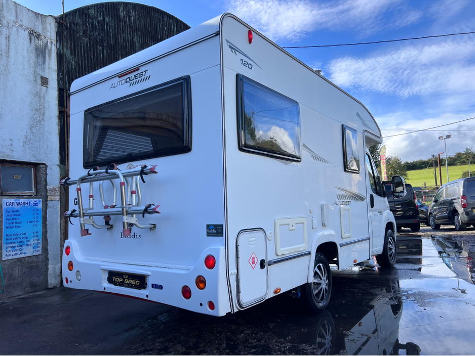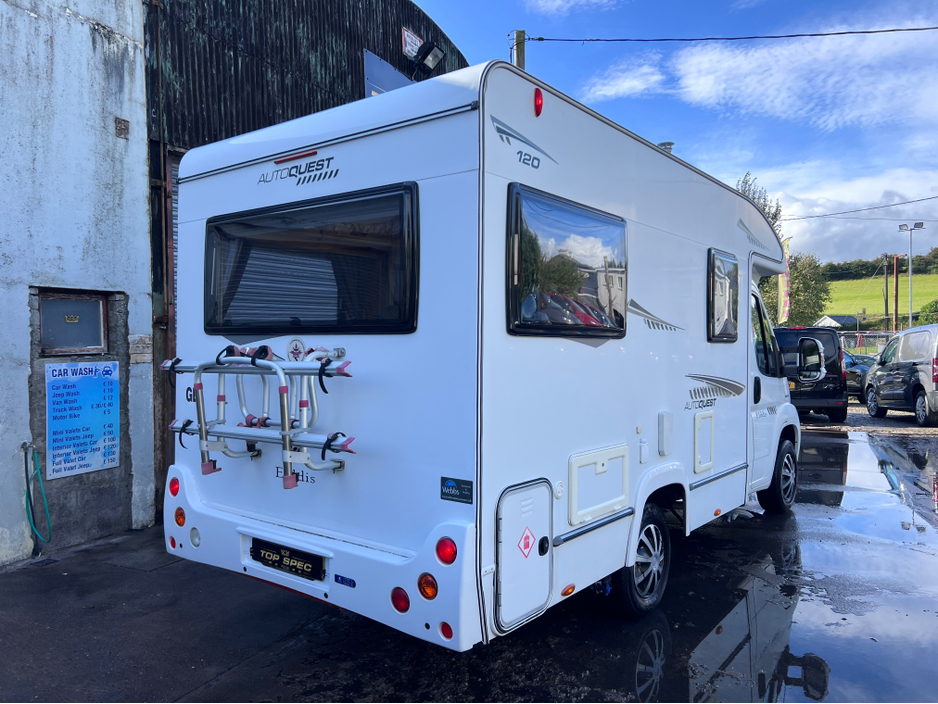 2008 Peugeot Boxer Elddis Autoquest 120 camper This lovely example of the Elddis Autoquest 120, with the Peugeot Boxer chassis and the diesel 2.2 litre chain driven engine, with 5 speed manual gearbox. Mileage of only 54957 with a fully warranted service history . With overall length of just 5.84 m and width of 2.2m and a gross weight of 3000kg so can be driven on a normal licence. 2 berth /2 seatbelts it is the perfect size motorhome for couples, allowing space to freely move around and the large rear lounge area that converts into the bedroom at night. This is an Ideal starter motorhome that is ready for an adventure Vehicle 2008 (08) 2.2 litre Peugeot boxer engine 5 Speed Manual Gearbox Cab Central Locking Cruise Control Electric Mirrors & Windows Steering Wheel Controls Parking sensors Spare wheel habitation check completed 09/06/2025 showing no damp issues Layout This motorhome really maximises space with plenty of light through the large side windows and roof light , the rear seating area turns into a spacious double bed. The motorhome also features a fully equipped kitchen area, bathroom with basin, toilet and separate shower. Main Features 3 ring Gas Hob Separate Oven And Grill 3 way Dometic Fridge With Freezer Truma Heating & Hot Water Blinds And Fly Screens Free Standing Table (Stored Away) Leisure Battery Fresh & Waste Water Tanks Solar panels Wind Out Awning Bke carrier for 2 bikes Avtex TV & TV Aerial With Booster DRIVES AS NEW FIRST TO VIEW WILL BUY Very Economical! Mileage only 54k with full main dealer service history Price €34800 all in Call sales on 0871925200 Stunning camper in every way Strictly appointment only Check us out on Facebook for more info top spec motors and follow us on snap chat Finance & Warranty Available Top Spec Motors, Newmarket Co. Cork The prestige and performance specialists FULL 100% FINANCE CAN BE ARRANGED WITHIN 1 HOUR ARRIVE AND DRIVE THE SAME DAY Cork,s Used High Spec Car, Commercial and 4x4 Specialists Card Machine available on site Viewing 7 Days A Week and after 6pm to 11pm by appointment only *FREE NATIONWIDE DELIVERY ANYWHERE* From our forecourt to your front door for no extra cost Click the link below for more info Www.topspecmotors.ie Air bags, Central locking, Electric windows, Electronic brakeforce distribution (EBD), Multi Function Steering Wheel Controls, Power steering