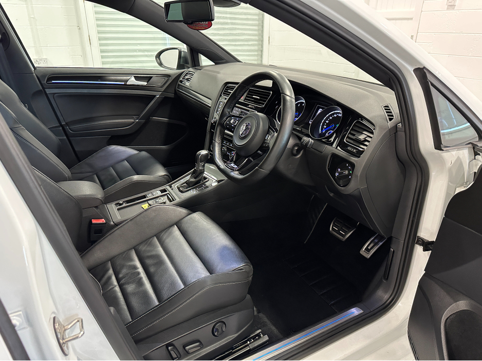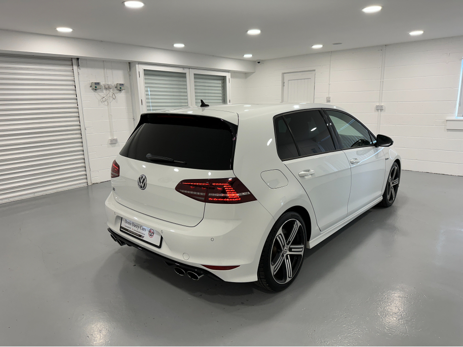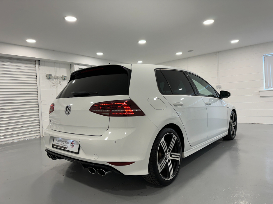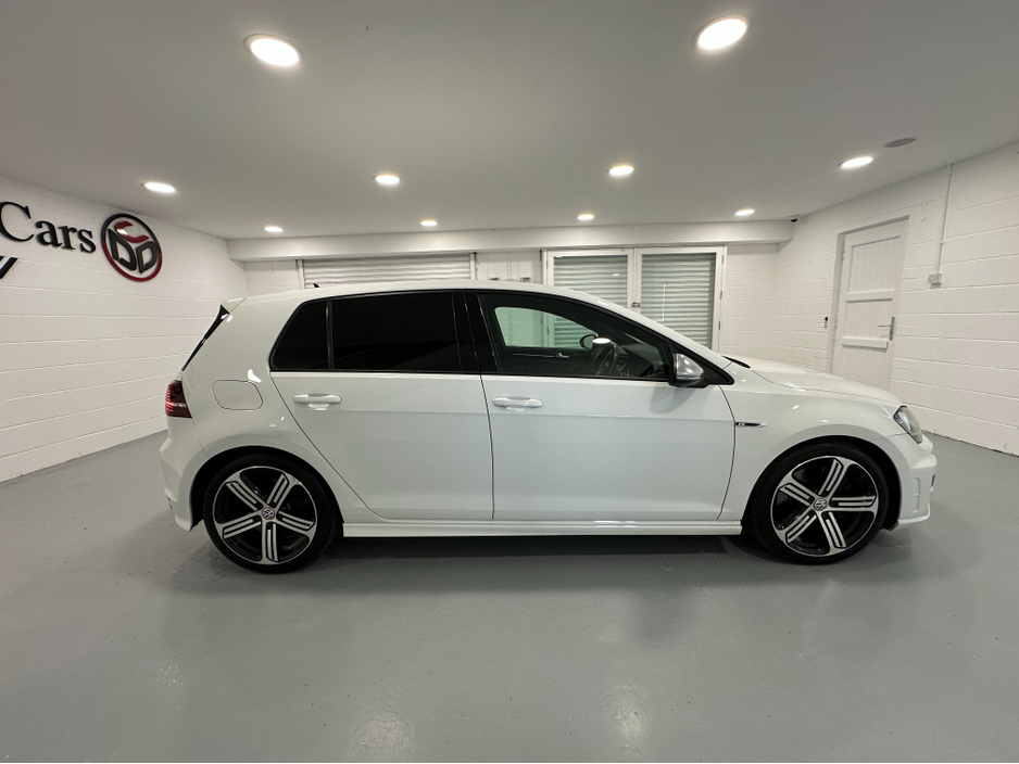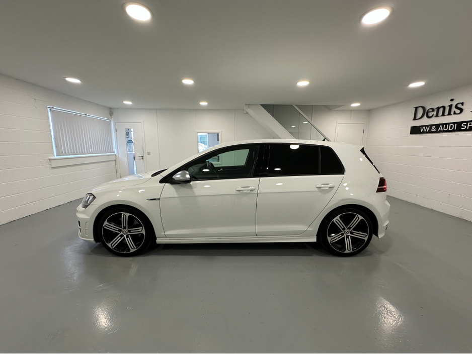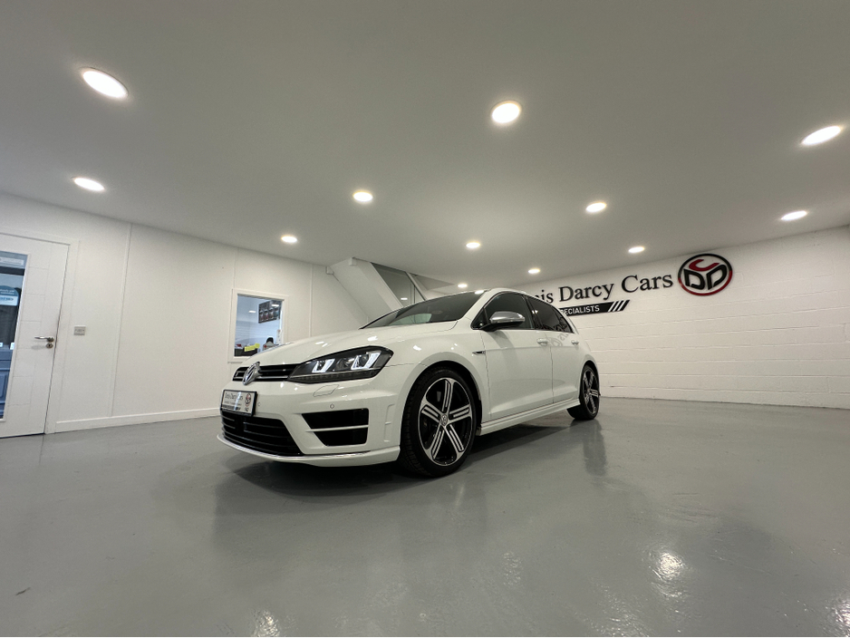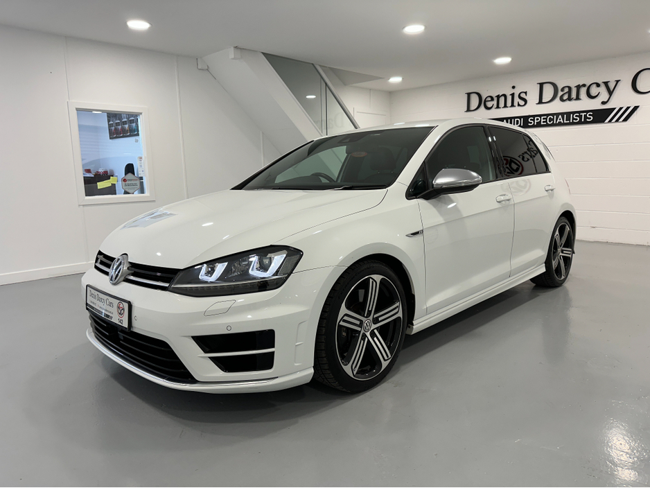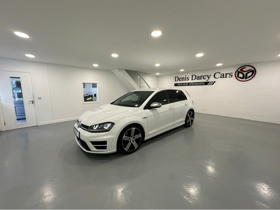 WWW.DENISDARCYCARS.IE VW/AUDI SPECIALISTS. 142 GOLF R DSG 300BHP 4 MOTION IN ORYX WHITE. SPEC INCLUDES, 19'' CANDICE ALLOYS, PRIVACY GLASS, LED/XENON LIGHTS, PARKING SENSORS, HEATED LEATHER MEMORY SEATS, AUTO LIGHTS/WIPERS, ARMREST, CLIMATE AC, ADAPTIVE CRUISE CONTROL, BLUETOOTH MEDIA, MULTIFUNCTION LEATHER STEERING WITH PADDLE SHIFT, ELECTRIC SEATS, BLACK PIANO DASH INLAYS, FOLDING MIRRORS, KEYLESS, ADAPTIVE MODE SUSPENSION. CAR COMES FULLY SERVICED AND A NEW NCT. WE ARE LOCATED JUST OFF THE M3 MOTORWAY EXIT 9, 20 MINS FROM DUBLIN..