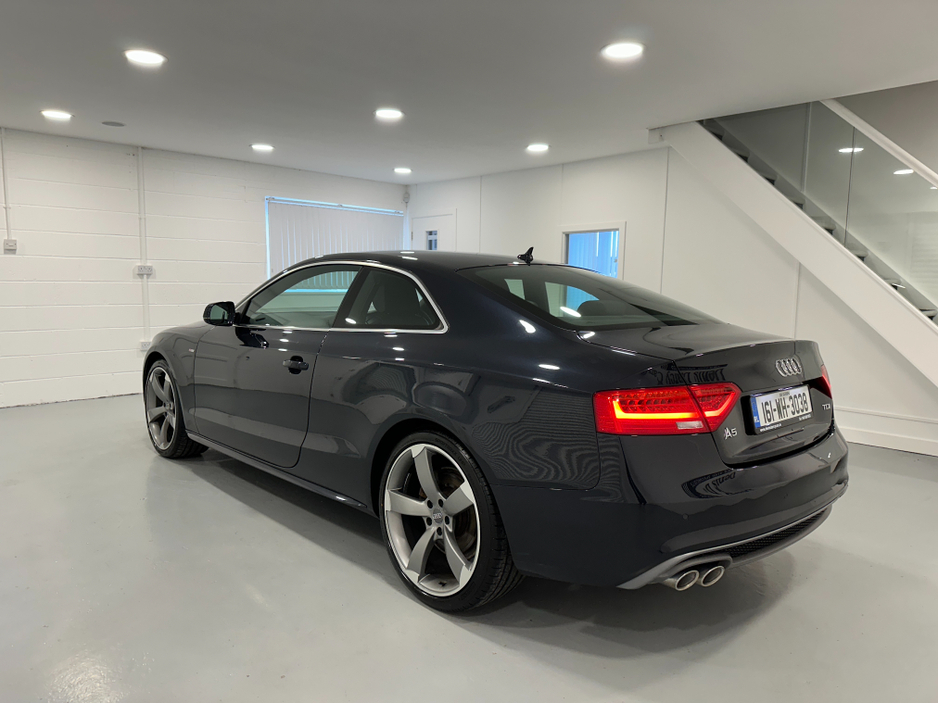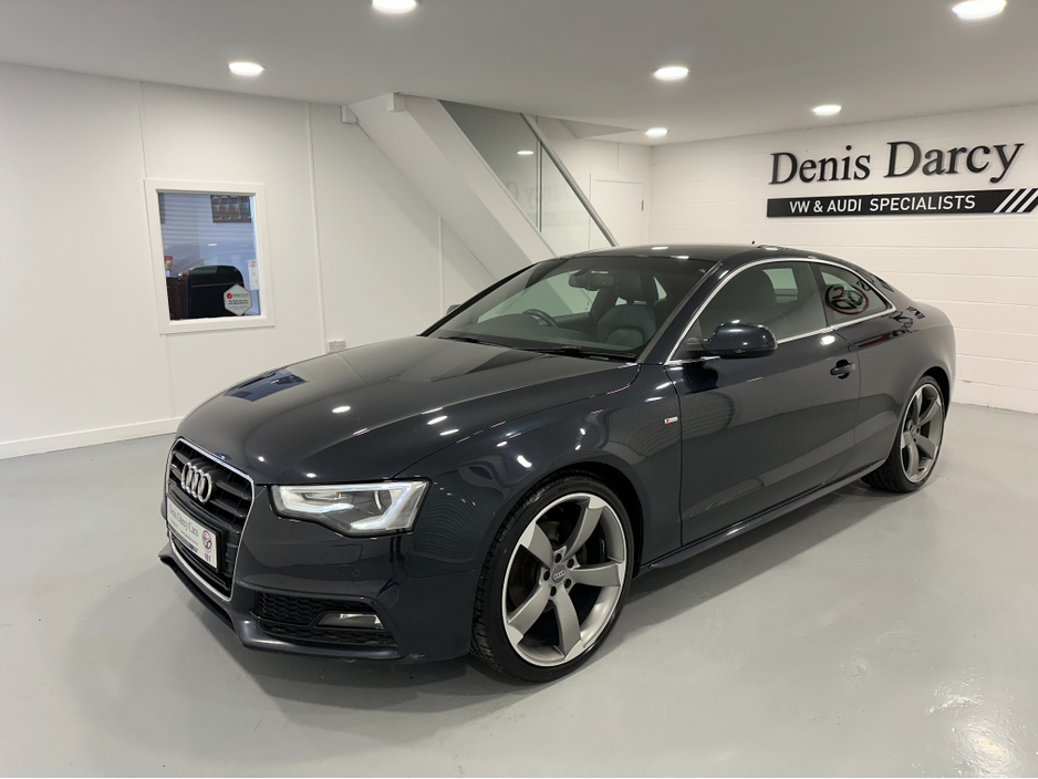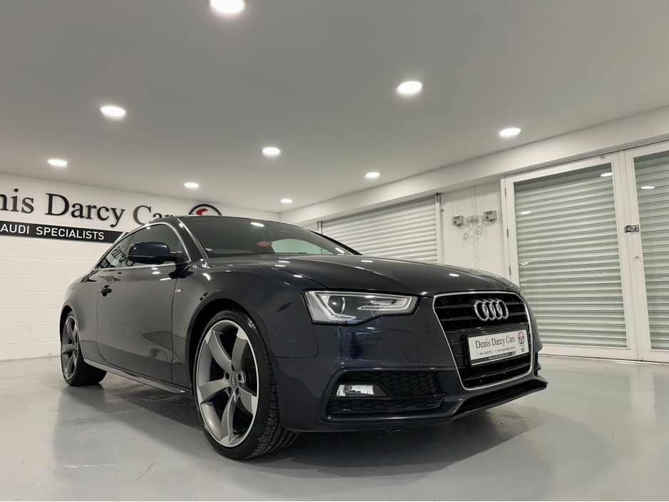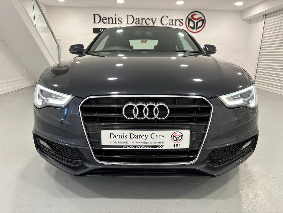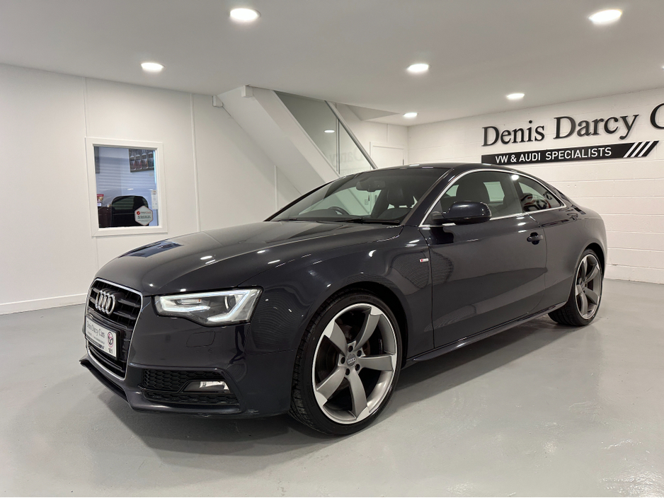 WWW.DENISDARCYCARS.IE VW/AUDI SPECIALISTS. 161 AUDI A5 S LINE 2.0TDI COUPE IN MOONLIGHT BLUE. SPEC INCLUDES, 20'' TTRS ALLOYS, CHROME PACK, FRONT FOG LIGHTS, REMOTE LOCKING, AUTO LIGHTS/WIPERS, HEATED LEATHER S LINE SEATS, MULTIFUNCTION S LINE FLAT BOTTOM STEERING WHEEL, SAT NAV. BLUETOOTH, TWO KEYS, ARMREST, CLIMATE AC, CRUISE CONTROL. CAR COMES FULLY SERVICED TIMING BELT AND WATERPUMP IS DONE. WE ARE LOCATED JUST OFF THE M3 MOTORWAY EXIT 9,20 MINS FROM DUBLIN. Central Locking, Electric Windows, Airbag, Cruise Control, Fog Lamps, Centre Armrest, Multi-function steering wheel, Satellite Navigation, Traction Control, Metallic Paint, Anti-Theft System, Parking Sensors, Bluetooth, EBD, Isofix, Keyless Entry, Active Safety Braking / City Brake / Collision Alert, Stop/Start Button, Touch Screen Media Control, External Devices Connectivity, Cup holders, Remote boot/hatch/rear door release, Stability control