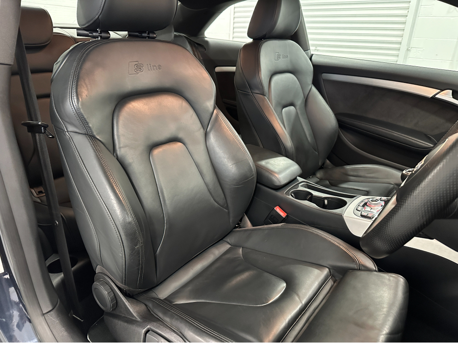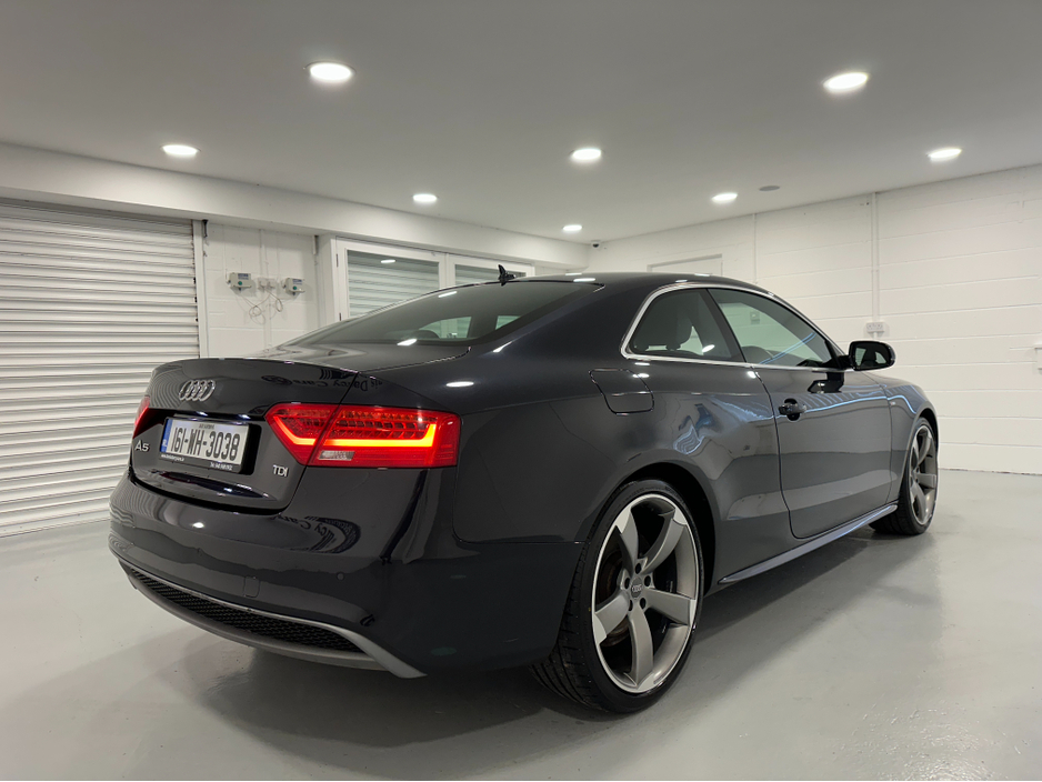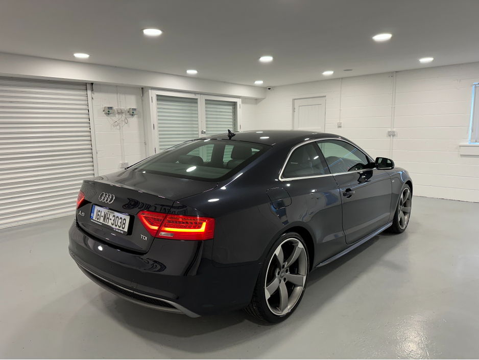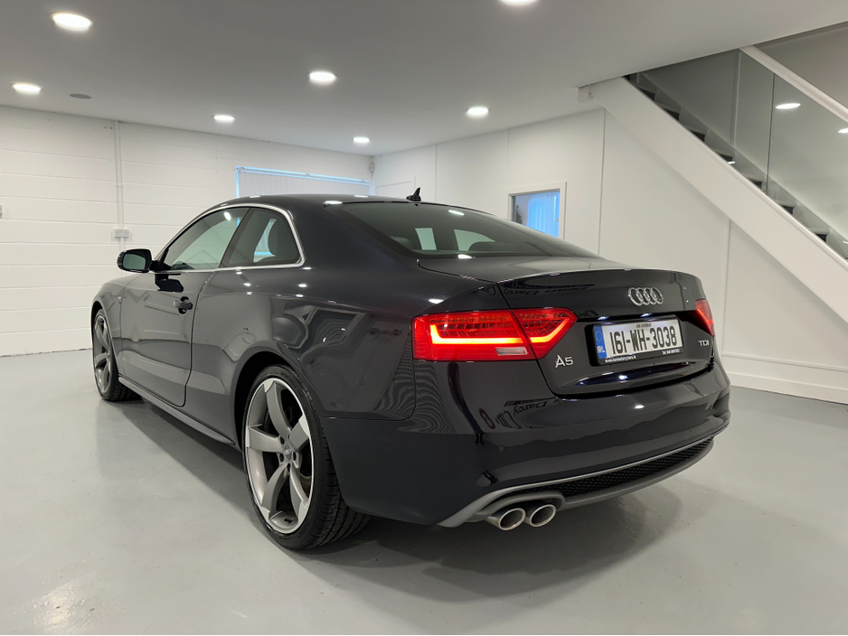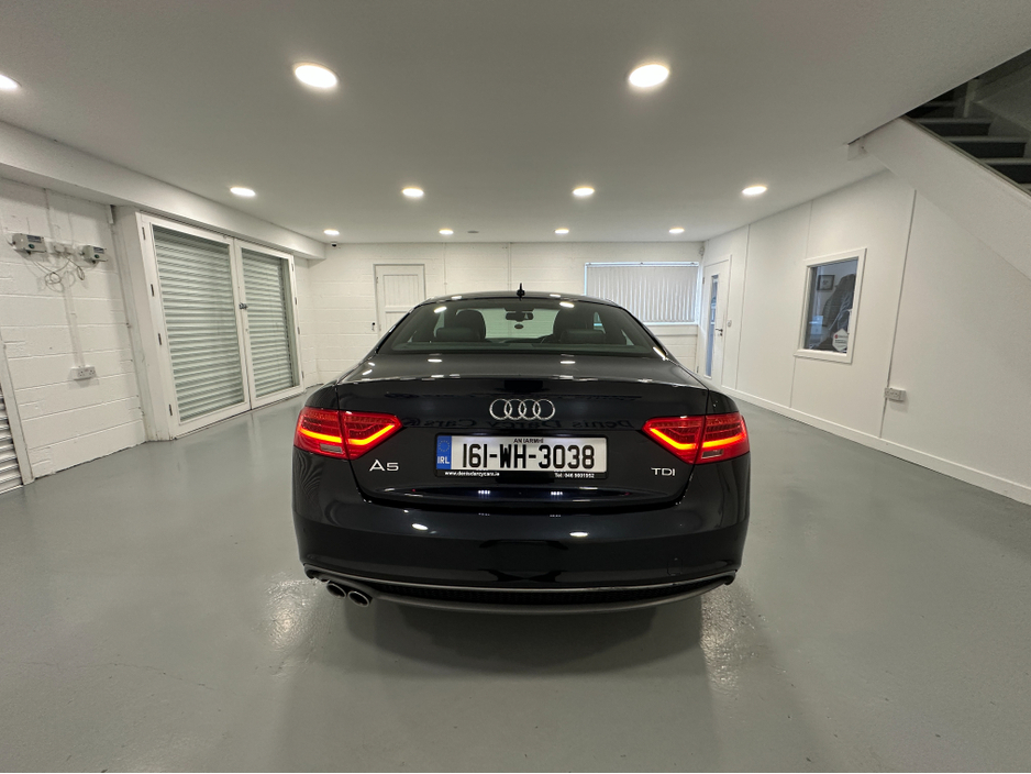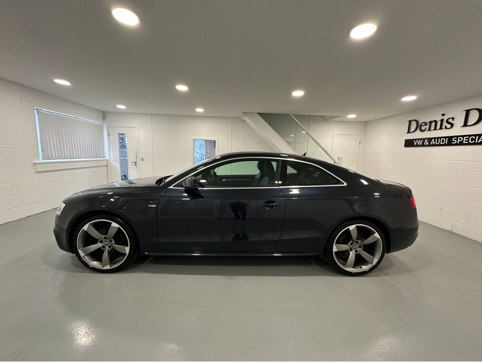 WWW.DENISDARCYCARS.IE VW/AUDI SPECIALISTS. 161 AUDI A5 S LINE 2.0TDI COUPE IN MOONLIGHT BLUE. SPEC INCLUDES, 20'' TTRS ALLOYS, CHROME PACK, FRONT FOG LIGHTS, REMOTE LOCKING, AUTO LIGHTS/WIPERS, HEATED LEATHER S LINE SEATS, MULTIFUNCTION S LINE FLAT BOTTOM STEERING WHEEL, SAT NAV. BLUETOOTH, TWO KEYS, ARMREST, CLIMATE AC, CRUISE CONTROL. CAR COMES FULLY SERVICED TIMING BELT AND WATERPUMP IS DONE. WE ARE LOCATED JUST OFF THE M3 MOTORWAY EXIT 9,20 MINS FROM DUBLIN. Central Locking, Electric Windows, Airbag, Cruise Control, Fog Lamps, Centre Armrest, Multi-function steering wheel, Satellite Navigation, Traction Control, Metallic Paint, Anti-Theft System, Parking Sensors, Bluetooth, EBD, Isofix, Keyless Entry, Active Safety Braking / City Brake / Collision Alert, Stop/Start Button, Touch Screen Media Control, External Devices Connectivity, Cup holders, Remote boot/hatch/rear door release, Stability control
