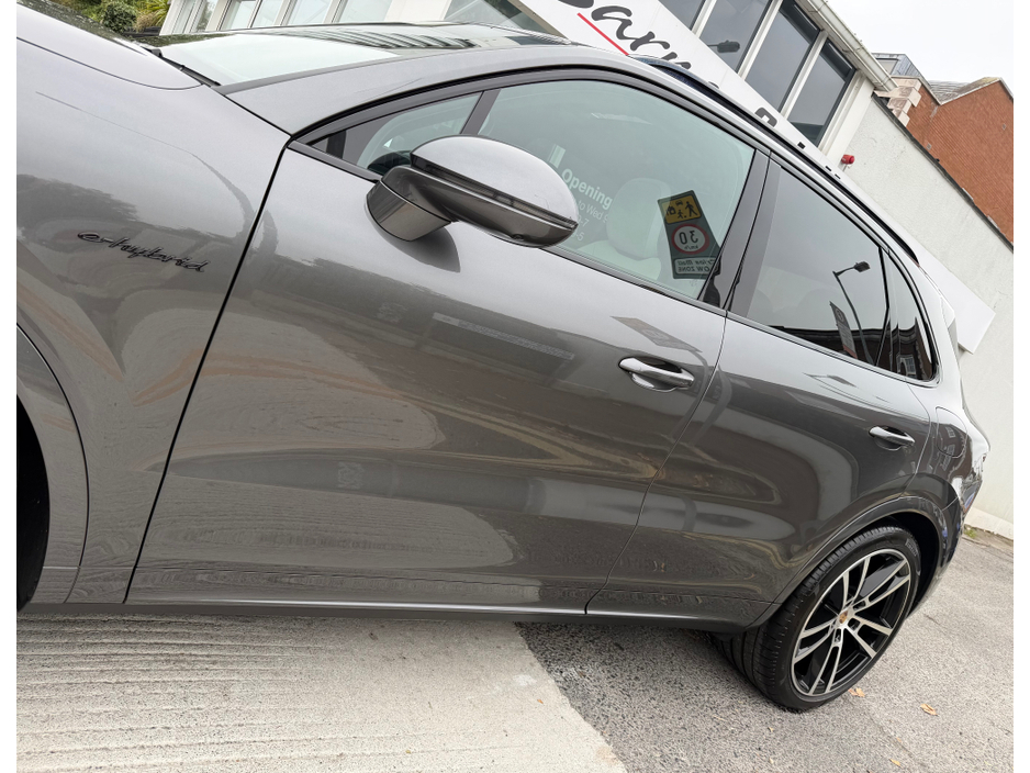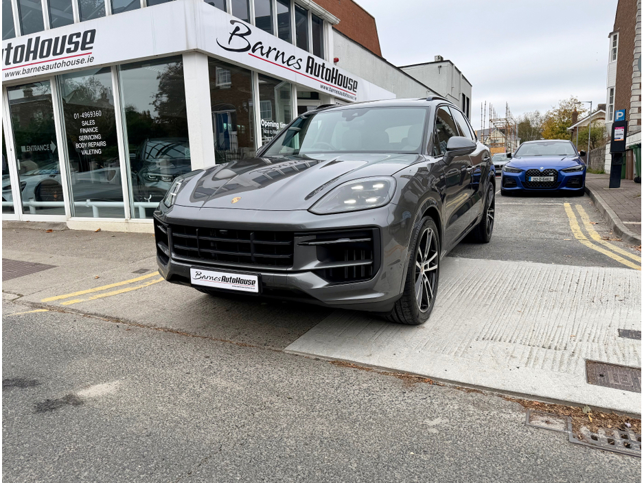Gorgeously Speced Cayenne Hybrid finished in Quarzite Grey Metallic with Contrasting Two Tone Crayon & Black Smooth finished Leather. Nice features such as, Panoramic Sunroof, Upgraded 22 Sport Design Alloys, Adaptive Air Suspension (PASM), Matrix LED Headlights, Sports Design Tailpipes, Sports Design Package, High Gloss Black Exterior Accents, Bose Surround Sound System, Electric Heated Seats, Crested Headrest, GT Sports Heated Steering Wheel, 360 Parking Cameras, Rear Privacy Glass, Wireless Phone Charging, Comfort Access, Electric Tailgate & Electrically deployable Tow Bar to name but a few highlights. €140 Annual Road Tax. Please contact Ross to arrange an appointment on 01 4969360 or 086 1683343. Barnes AutoHouse is a dedicated premium used German car retailer located in Rathgar Village Dublin 6. Central Locking, Electric Windows, Airbag, Cruise Control, Rear Spoiler, Centre Armrest, Multi-function steering wheel, Satellite Navigation, Traction Control, Metallic Paint, Anti-Theft System, Parking Sensors, Bluetooth, Tow Bar, Isofix, Apple Car Play, Android Auto, Active Safety Braking / City Brake / Collision Alert, Stop/Start Button, External Devices Connectivity, Cup holders, Stability control