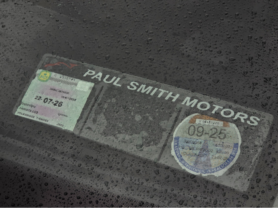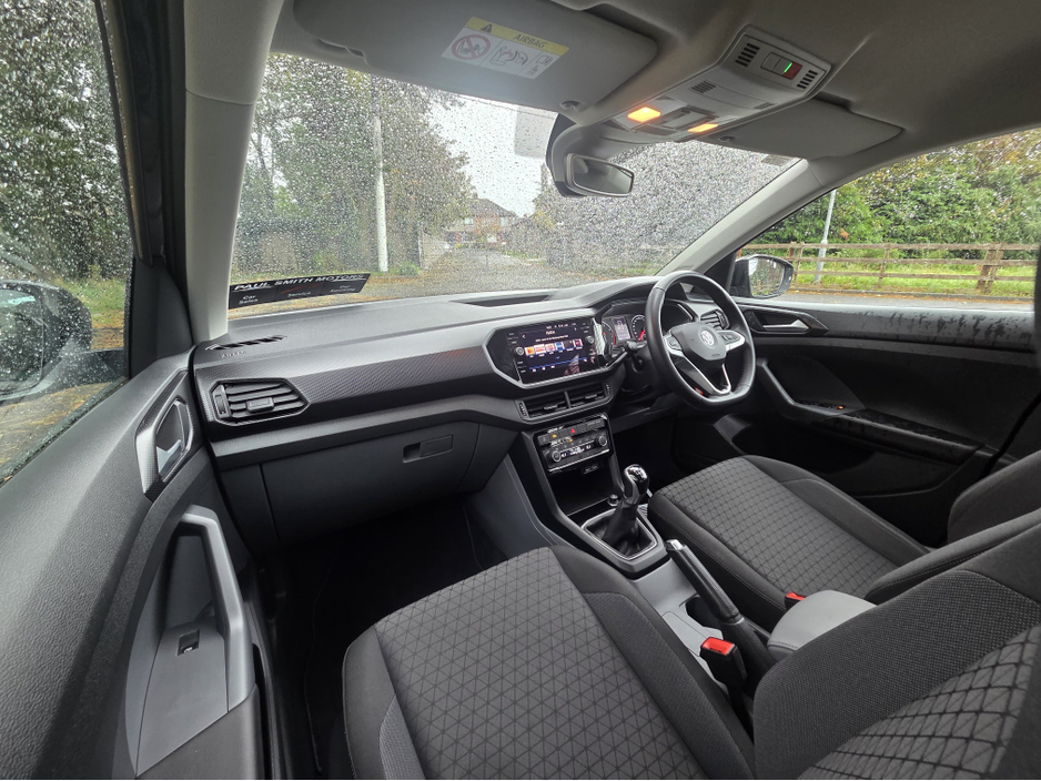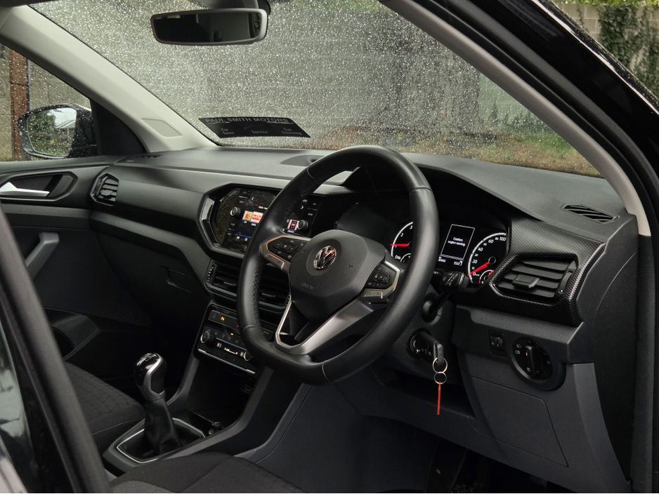 2020 VW T-Cross Base Black / Black 30,000 km NCT 07/26 A very tidy 2020 Volkswagen T-Cross Base model in all-black with black upholstery. Just 30,000 km, well maintained, ready for NCT until July 2026. Features include 1.0-litre TSI petrol Manual gearbox (base trim) Cloth black seats, manual adjustment Elec front windows & mirrors Multi-function steering wheel Bluetooth / USB connectivity touchscreen radio Halogen headlights with daytime running lights Body-coloured bumpers, handles, roof rails Alloy wheels (likely 16) ISOFIX child seat anchors multiple airbags Boot space with folding 60/40 rear seats Extras & Condition Full service history Good condition inside & out Finance & warranties available Trade-ins welcome For more info contact Daryl at 085 108 4514 www.psmotorgroup.com Central Locking, Electric Windows, Airbag, Cruise Control, Fog Lamps, Centre Armrest, Multi-function steering wheel, Roof Rails, Traction Control, Bluetooth, EBD, Isofix, Apple Car Play, Android Auto, Active Safety Braking / City Brake / Collision Alert, Stop/Start Button, External Devices Connectivity, Cup holders, Remote boot/hatch/rear door release, Stability control