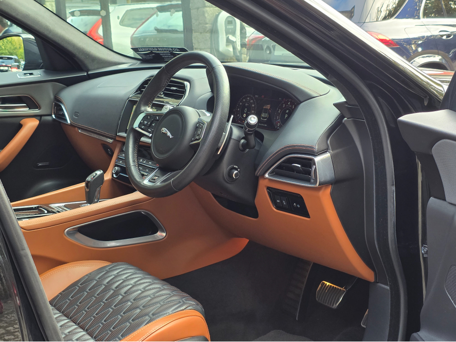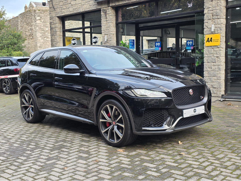 Stunning one-owner Jaguar F-PACE 5.0 SVR Supercharged 550 BHP Auto with full service history. Specifications include leather interior, heated and air-cooled seats, Meridian surround sound system, privacy glass, panoramic glass roof, adaptive LED headlights, keyless entry, lane assist, rear camera, aluminum gear paddles, DAB radio, front headrests with SVR embossing, InControl apps, SVR body-colored claddings, SVR front bumper, SVR luxury carpets, and Alcantara headcloth. Fully loaded with an impressive spec! Open 7 days a week by appointment. Tailored finance options availablebad credit? No problem (T&Cs apply). Free nationwide delivery! All vehicles are sanitized prior to inspection and delivery. Our virtual showroom is now open, and we can be contacted via phone, email, WhatsApp, and all social media channels. Viewing by appointment only! Open 7 days a week, Sunday by appointment. Finance arranged in 1 hour. Contact our sales team for more information. We are an NCA-authorized credit intermediary on behalf of First Auto Finance Ltd, Alphera Financial Services, Bluestone Finance 1 Ltd, and AIB/BOI approved dealer. Over 150 approved used vehicles in stock. SIMI member 2025. PCP finance available. Experts in obtaining finance for customers with poor credit history. S.C.R. 12 Month Warranty, 2 Keys