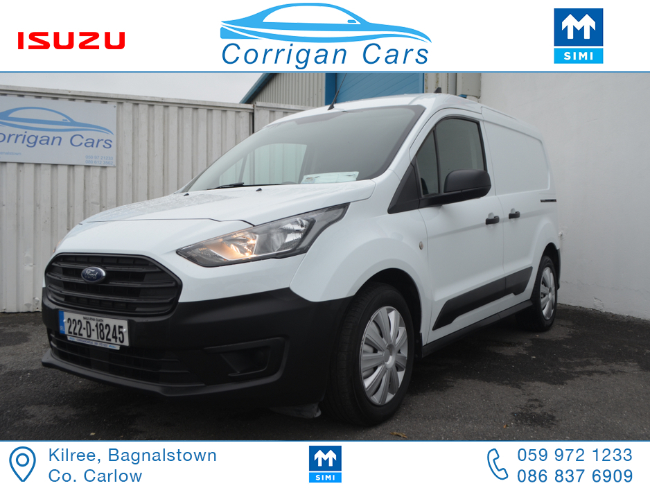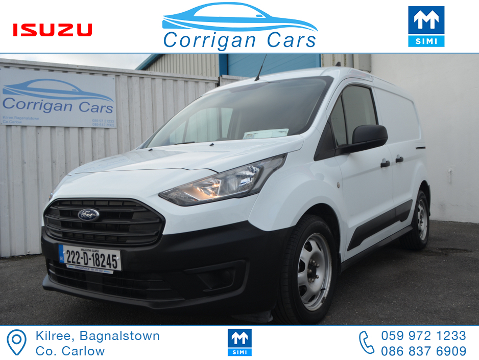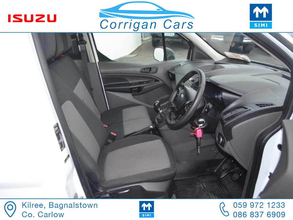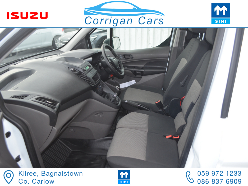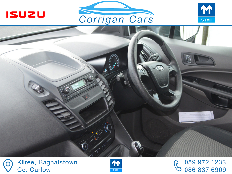 PRICE EXCLUDING VAT €13,004. New into Corrigancars is this one owner immaculate condition Connect Base presented in Arctic white, this van is in super condition inside and out and will be sold Fully Serviced, Doe tested, History checked to verify mileage and condition and with a comprehensive warranty. Low rate same day finance available in house an trade ins most welcome. For more details or to arrange a test drive please call Willie on 086 8376909 landline 059 9721233 or email sales@corrigancars.ie Air bags, Bluetooth, Central locking, Electric windows, Electronic brakeforce distribution (EBD), Multi Function Steering Wheel Controls, Power steering, Traction control (ASR)