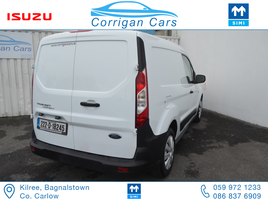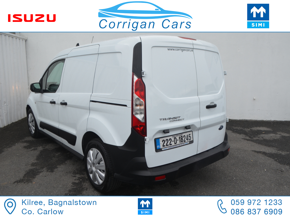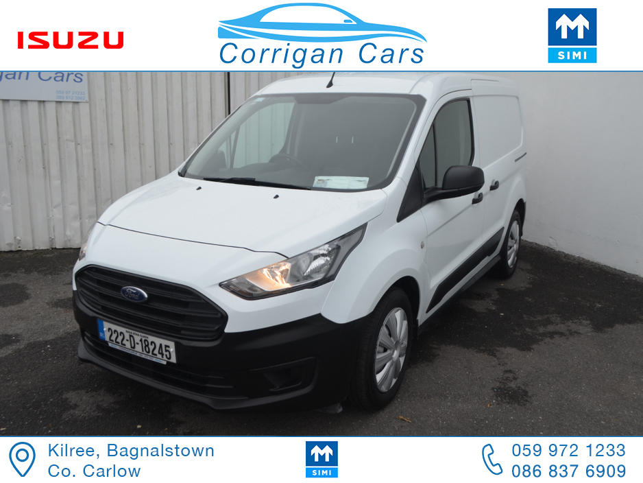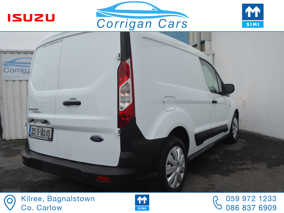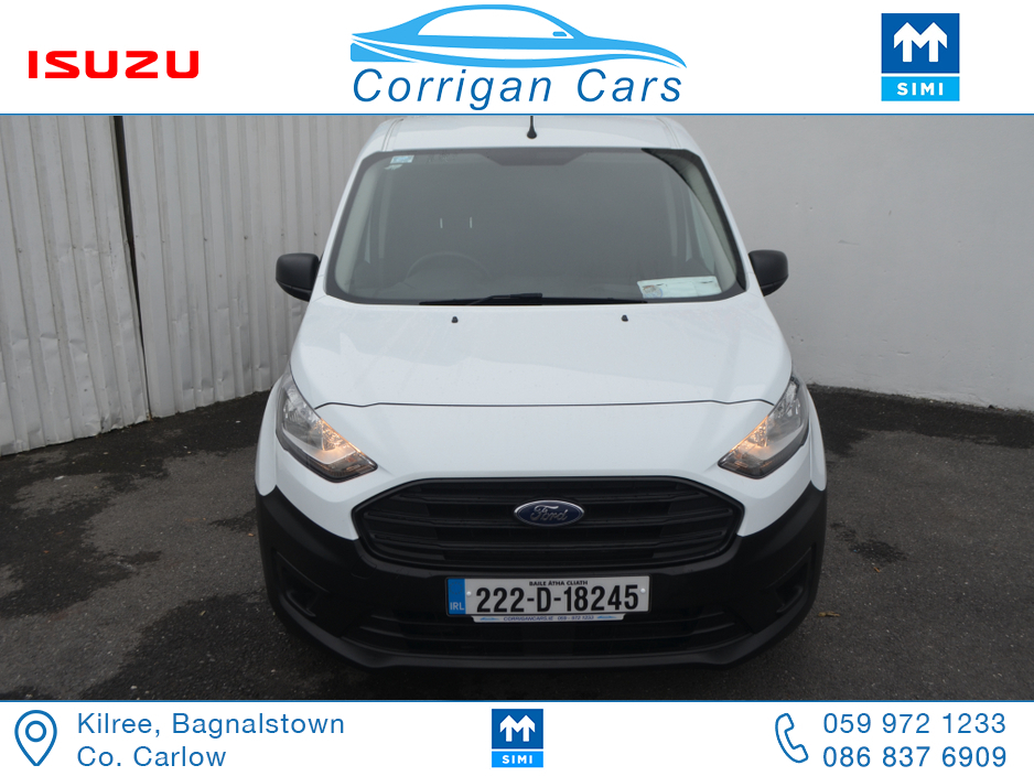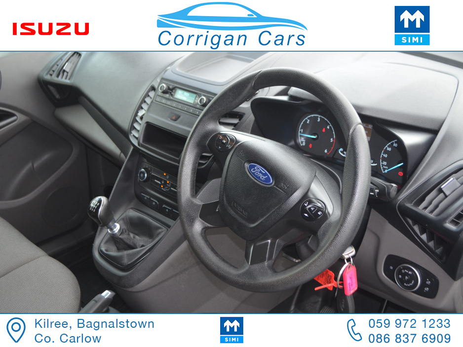 PRICE EXCLUDING VAT €13,004. New into Corrigancars is this one owner immaculate condition Connect Base presented in Arctic white, this van is in super condition inside and out and will be sold Fully Serviced, Doe tested, History checked to verify mileage and condition and with a comprehensive warranty. Low rate same day finance available in house an trade ins most welcome. For more details or to arrange a test drive please call Willie on 086 8376909 landline 059 9721233 or email sales@corrigancars.ie Air bags, Bluetooth, Central locking, Electric windows, Electronic brakeforce distribution (EBD), Multi Function Steering Wheel Controls, Power steering, Traction control (ASR)