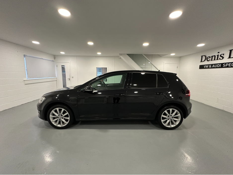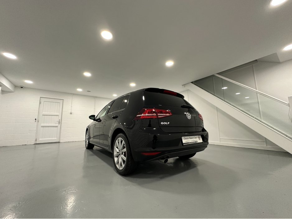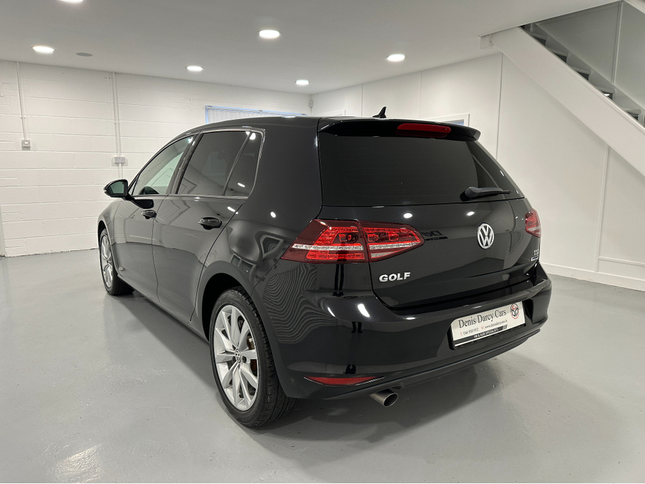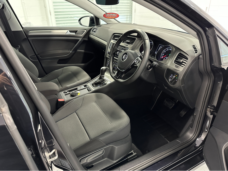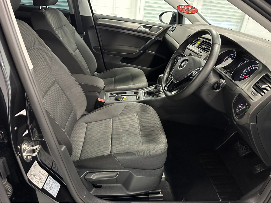 WWW.DENISDARCYCARS.IE VW/AUDI SPECIALISTS. 171 VW GOLF 1.2TSI DSG COMFORTLINE IN DEEP BLACK. SPEC INCLUDES, ALLOYS, LED LIGHTS, ELECTRIC FOLDING MIRRORS, PRIVACY GLASS, REVERSING CAMERA, PARKING SENSORS, AUTO LIGHTS/WIPERS, MULTIFUNCTION LEATHER STEERING WHEEL, ADAPTIVE CRUISE CONTROL, PADDLE SHIFT, CLIMATE AIRCON, APPLE CARPLAY AND ANDROID AUTO, KEYLESS, AUTO HOLD, PARALLEL PARKING, SERVICE HISTORY. WE ARE LOCATED JUST OFF THE M3 MOTORWAY EXIT 9, 20 MINS FROM DUBLIN.