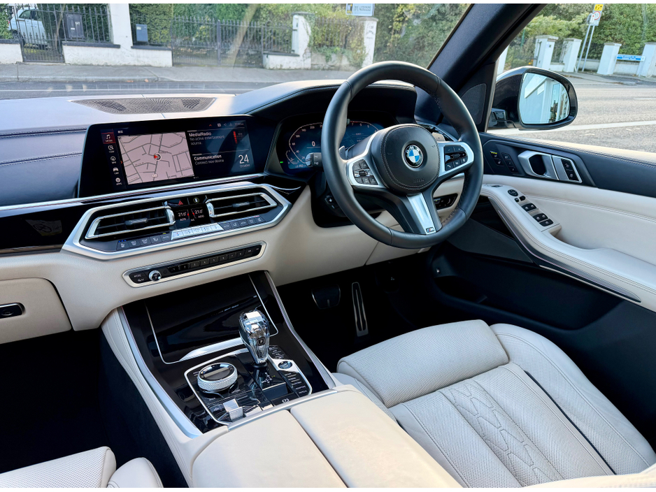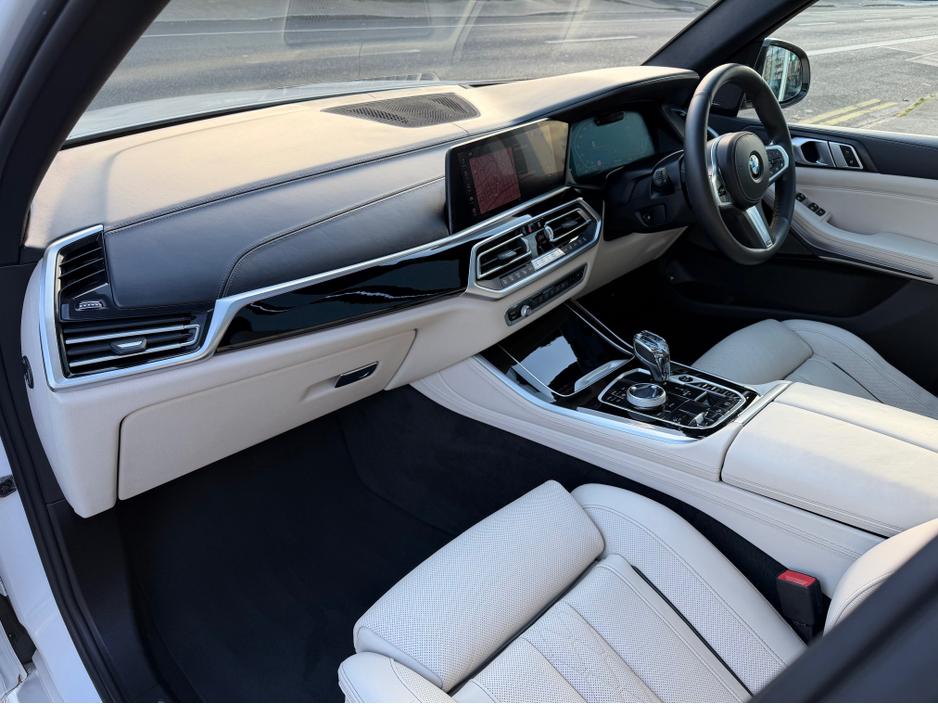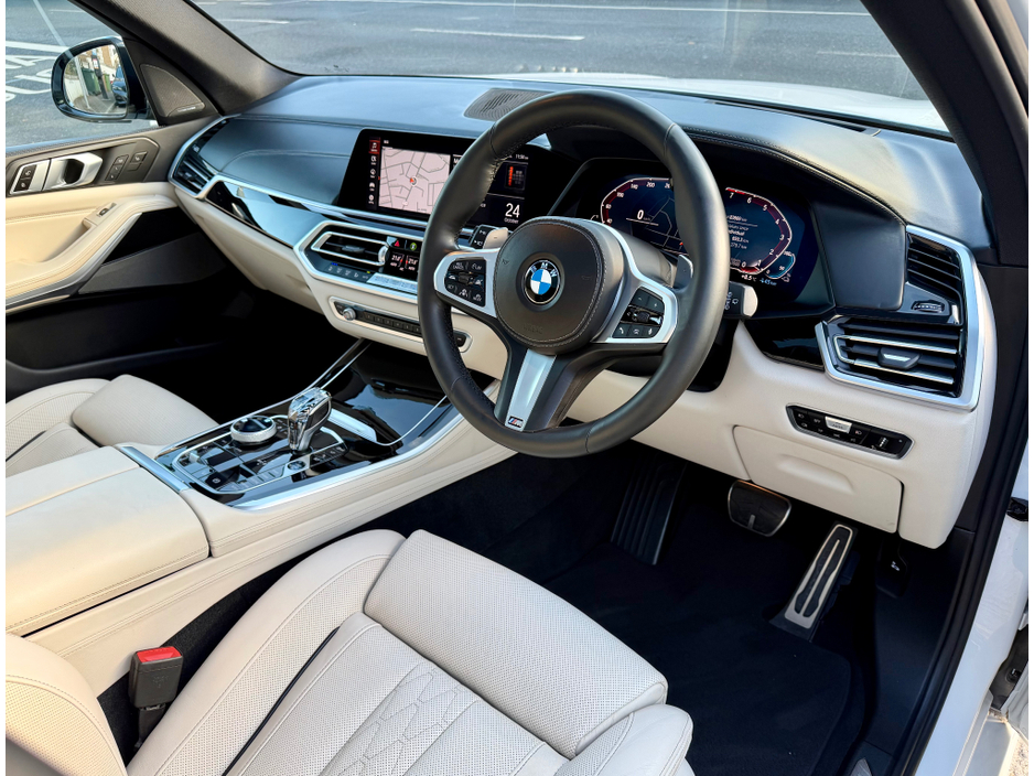 Massively Speced X5 45e M-Sport Pro finished in Mineral White Metallic with Ivory Quilted Leather Comfort Seats and Contrasting Piano Black Dash Inlay. A huge array of factory optional extras such as, Upgraded 21Y Spoke Alloys, Electric Panoramic Sunroof, Laser Headlights, Harmon Kardon Sound, Driver Assistant Package including Adaptive Cruise Control, Heads Up Display, Comfort Access, Adaptive Air Suspension, Electric Heated & Cooled Memory Seats with Massage function, 360 Parking Cameras, Rear Privacy Glass & Rear Blinds, Electric Tailgate to name but a few highlights. €140 Annual Road Tax. Please contact Ross to arrange an appointment on 01 4969360 or 086 1683343. Barnes AutoHouse is a dedicated premium used German car retailer located in Rathgar Village Dublin 6. Central Locking, Electric Windows, Airbag, Cruise Control, Fog Lamps, Rear Spoiler, Centre Armrest, Multi-function steering wheel, Roof Rails, Satellite Navigation, Traction Control, Anti-Theft System, Parking Sensors, Bluetooth, EBD, Isofix, Apple Car Play, Active Safety Braking / City Brake / Collision Alert, Stop/Start Button, External Devices Connectivity, Cup holders, Remote boot/hatch/rear door release, Stability control