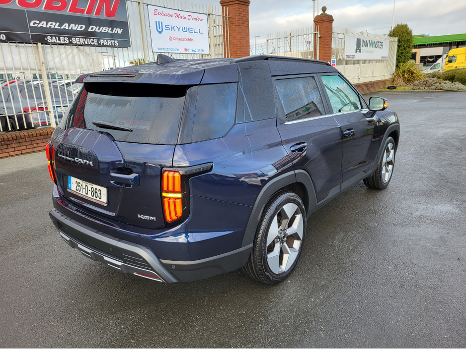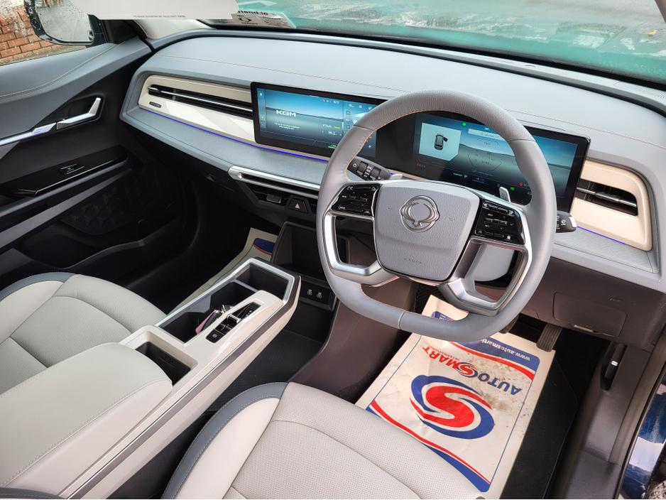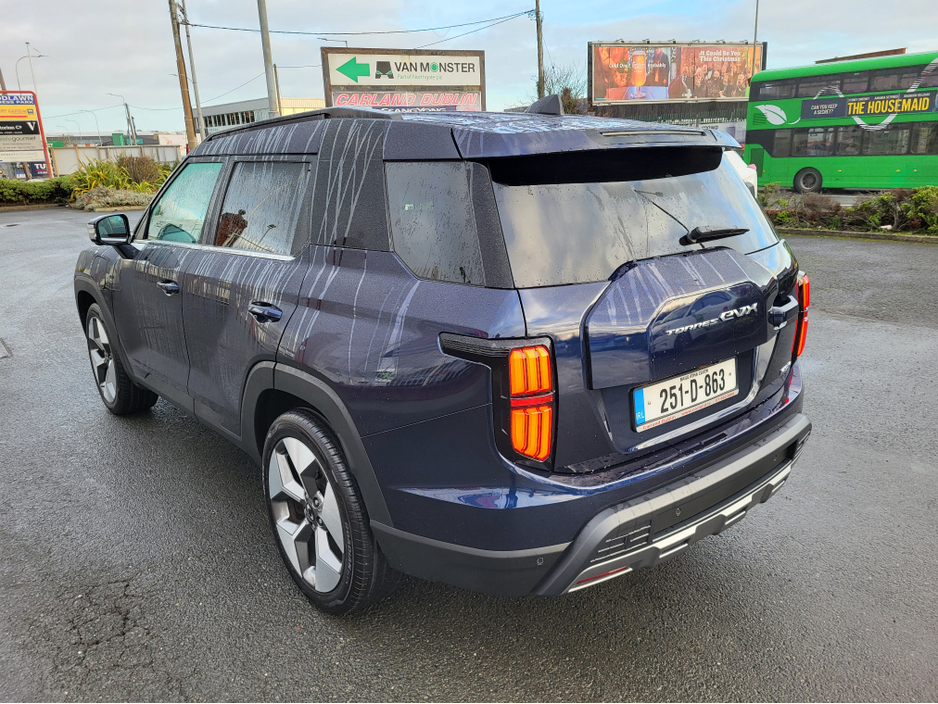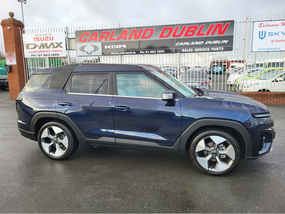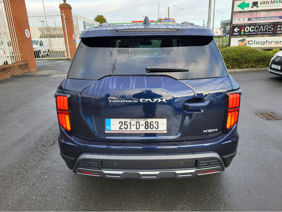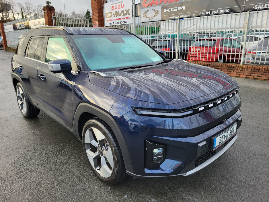 251 Pre-Owned with only 4000k kms only €39999-Dandy blue metallic The All new KGM Torres EVX has landed at Carland Dublin this model comes with an astounding 1 Million Kms 10 year Battery warranty does 465kms on a single charge (WLPT) with a 73.4 Kwh battery. Massive spec to include 20" diamond cut alloys front LED Headlights led strip privacy glass roof rails etc. On the interior an impressive 3d surround camera two screens with nav, heated electric leather seats front and rear, heated steering wheel A/C Dual climate cruise control and more. Impressive boot space with over 839 litres and with the seats down over 1600 litres. The future is now with this new model from KGM formally SsangYong Built in south Korea and now available for immediate delivery from Carland KGM call us on 01-8623860 Ext 1 (sales) Air Conditioning, Central Locking, Immaculate condition, Electric Windows, Airbag, Alarm, Alloy Wheels, Electric Mirrors, Electric Seats, Immobiliser, Full Leather, Privacy Glass, Automatic Wipers, Automatic Lights, Centre Armrest, Luggage Cover, Climate Control, Metallic Paint, Multiple Air Bags, Anti-Theft System, Bluetooth, Remote Central Locking, Electronic handbrake, Folding rear seats, Isofix, Hill holder, Apple Car Play, Android Auto, Keyless Entry, Heated Front Seats, Heated Rear Seats, Reversing Camera, Lane Departure Warning, Blind Spot Monitoring System, Active Safety Braking / City Brake / Collision Alert, Heated Steering Wheel, Adaptive Cruise Control, Drive Mode Selector, Daytime Running Lights, Manufacturer Warranty, 2 Keys, Cup holders