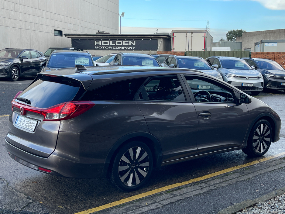 MASSIVE JANUARY SALE ON NOW**WAS €10900** 6 Stamp Service History Black Leather Interior Reliable & Practical This 2015 Honda Civic combines dependable performance with modern features and comfort. With full service history and a well-equipped interior, its a smart and stylish choice for everyday driving. Interior & Comfort * Black leather interior * Multifunctional steering wheel * Heated seats * Touch screen multimedia system * Satnav, Bluetooth, USB * Climate control air conditioning * 2 keys included Driving & Safety * Cruise control * Voice control * Auto lights * Gear shift paddles * Eco/Sport mode * Traction control * Rear camera A reliable, stylish, and well-equipped compact car the 2015 Honda Civic offers comfort, technology, and peace of mind for daily driving. Here at Holden Motor Company we are a family run business with a friendly and knowledgeable sales team. We aim to stock a wide range of over 100 carefully selected premium used cars all sourced directly from main dealerships here in Ireland and the UK. We aim to supply all our cars at the most competitive prices in the country. Extended warranty available on certain makes and models. Delivery can be arranged throughout the country. Each of our retail cars comes with a detailed history report and fully serviced or health checked by a network of independent mechanics, a valid NCT and valeted prior to collection. Tailored finance packages available. We are open 6 days a week. For more information on our cars please contact our sales team on 01-4604434/0870923236 or email sales@holdenmotorcompany.ie Due to a high turnover in stock we recommend that you contact our sales team to make sure the car is still available and to make an appointment.