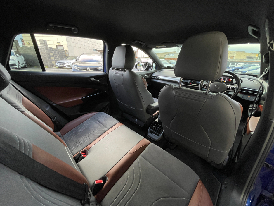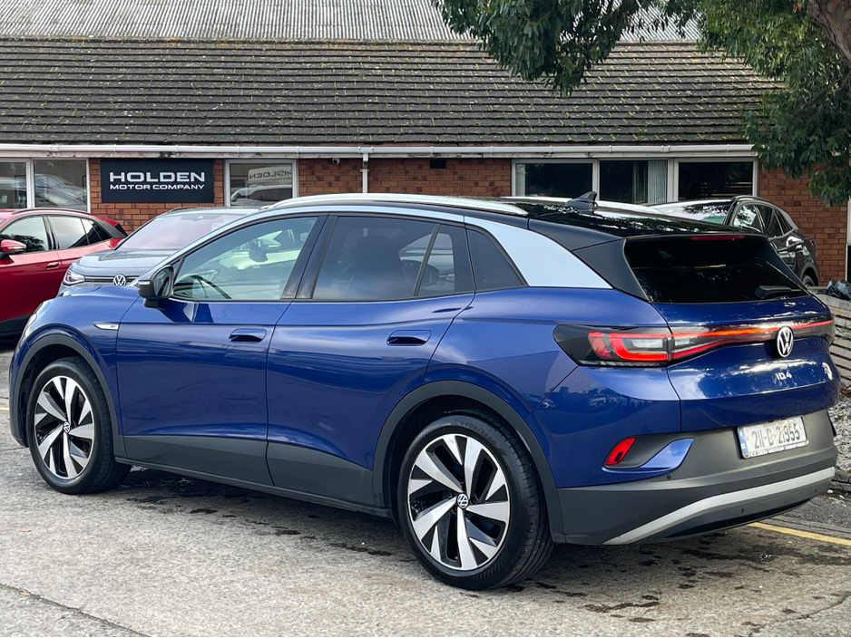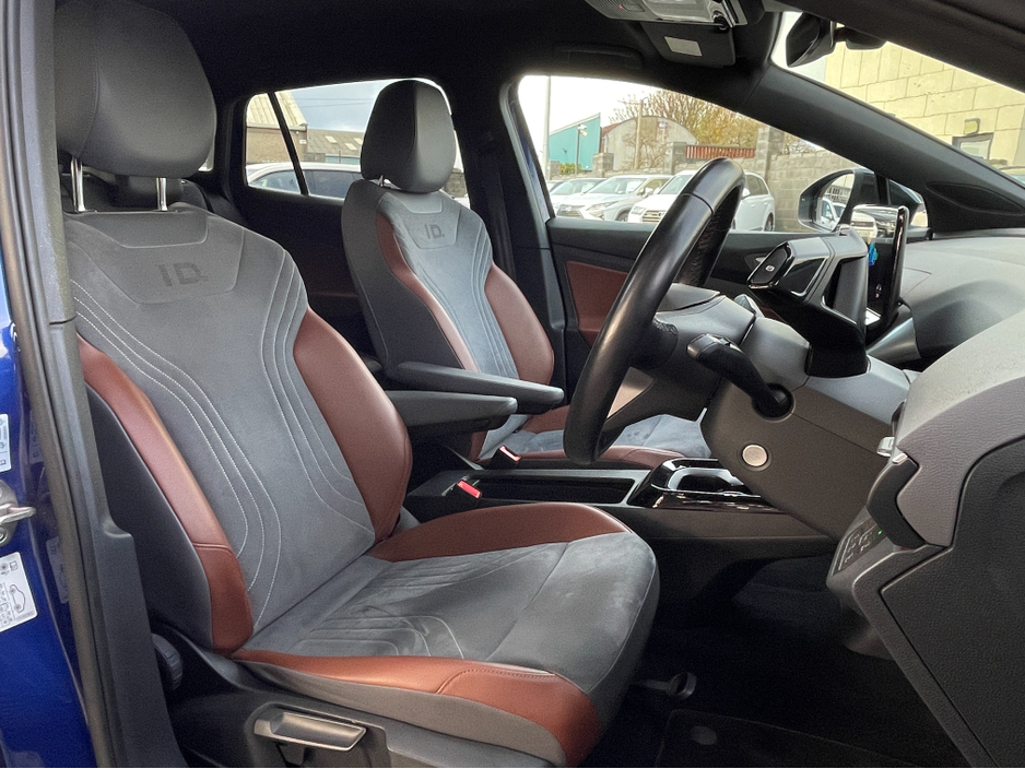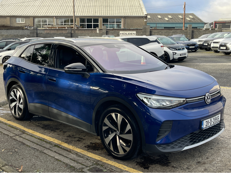 Brown Leather & Grey Alcantara Interior Full Service History 2 Keys This 2021 ID.4 1st Edition combines premium interior finishes with cutting-edge electric technology. Fully equipped with comfort, safety, and connectivity features, its a high-spec electric SUV in excellent condition. Interior & Comfort * Brown leather & grey Alcantara interior * Ambient interior lighting * Heated seats & heated steering wheel * Climate control air conditioning * Wireless phone charger * Folding mirrors * Push start button * Digital dashboard * Multifunctional steering wheel Performance & Drive * Adaptive cruise control * Auto lights * Auto hold * Multiple driving modes Safety & Assistance * Rear camera with park assist * Front & lane assist Technology & Connectivity * Touch screen multimedia system * Satnav * Bluetooth & WiFi * Apple CarPlay & Android Auto Extras * Full service inspection history * 2 keys A stylish, high-spec electric SUV the 2021 Volkswagen ID.4 1st Edition delivers comfort, advanced technology, and peace of mind. Here at Holden Motor Company we are a family run business with a friendly and knowledgeable sales team. We aim to stock a wide range of over 100 carefully selected premium used cars all sourced directly from main dealerships here in Ireland and the UK. We aim to supply all our cars at the most competitive prices in the country. Extended warranty available on certain makes and models. Delivery can be arranged throughout the country. Each of our retail cars comes with a detailed history report and fully serviced or health checked by a network of independent mechanics, a valid NCT and valeted prior to collection. Tailored finance packages available. We are open 6 days a week. For more information on our cars please contact our sales team on 01-4604434/0870923236 or email sales@holdenmotorcompany.ie Due to a high turnover in stock we recommend that you contact our sales team to make sure the car is still available and to make an appointment.