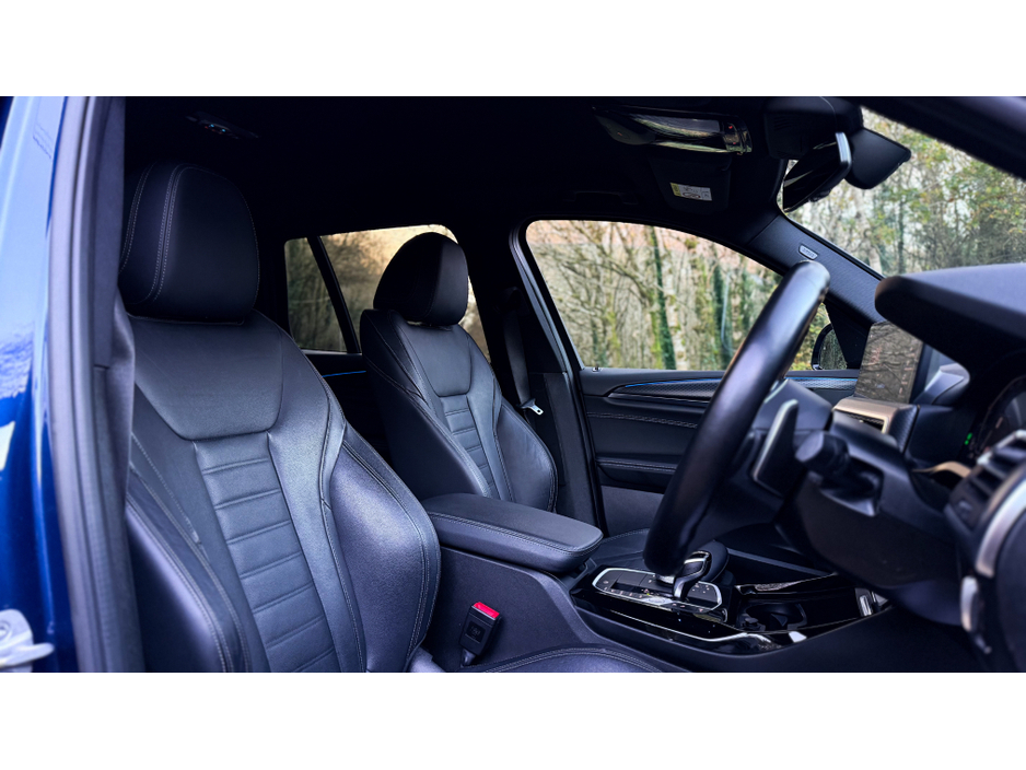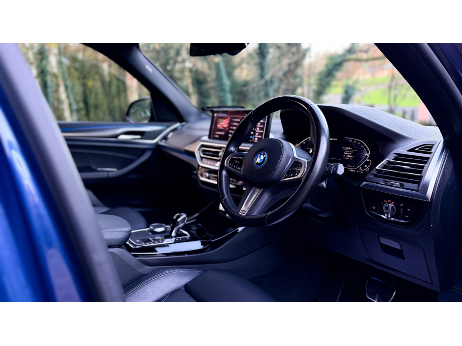 MEGA VALUE - LCI (NEW SHAPE) - REGISTERED ON THE COUNTY OF YOUR CHOICE FULL BMW IDRIVE SERVICE HISTORY At Cieran Mc Connon Car Sales we are delighted to offer for sale Irelands best value - 2022 (222) BMW X3 30E MSPORT 290BHP which is finished off in the ever stunning Phytonic Blue mettalic paintwork which is tastefully contrasted with brand new 21" alloy wheels (Included in price) This jeep also benefits from a brand new full M-Performance body kit & is of a great spec, some of our favourites includes Comfort Seating Memory seating Ambience package M-Performance front splitter - Side extensions - Rear Diffuser & spats - Pro Pack grilles - Rear spoilers Further spec includes Indv. high-gloss shadowline- extended I-Drive system Professional Sat-Nav Bluetooth Digital cockpit Air-Con USB/AUX connectivity Park distance control & so much more! Please WhatsApp 0877069707 to schedule an appointment - trade in appraisal - video presentation (VIEWING BY APPOINTMENT ONLY) Central Locking, Electric Windows, Airbag, Fog Lamps, Rear Spoiler, Centre Armrest, Multi-function steering wheel, Roof Rails, Satellite Navigation, Traction Control, Anti-Theft System, Parking Sensors, Bluetooth, EBD, Isofix, Active Safety Braking / City Brake / Collision Alert, Stop/Start Button, External Devices Connectivity, Cup holders, Remote boot/hatch/rear door release, Stability control
