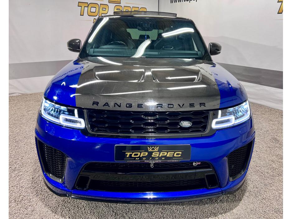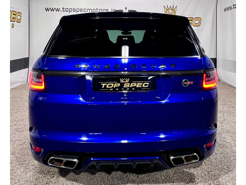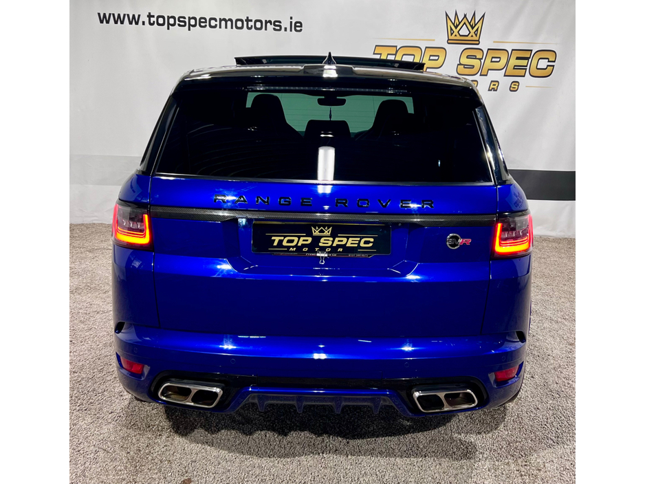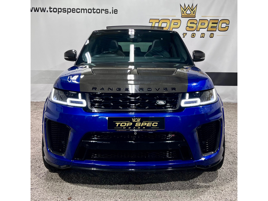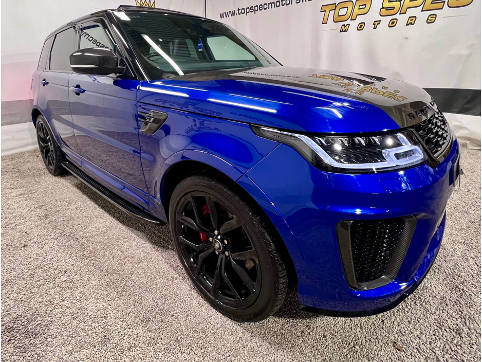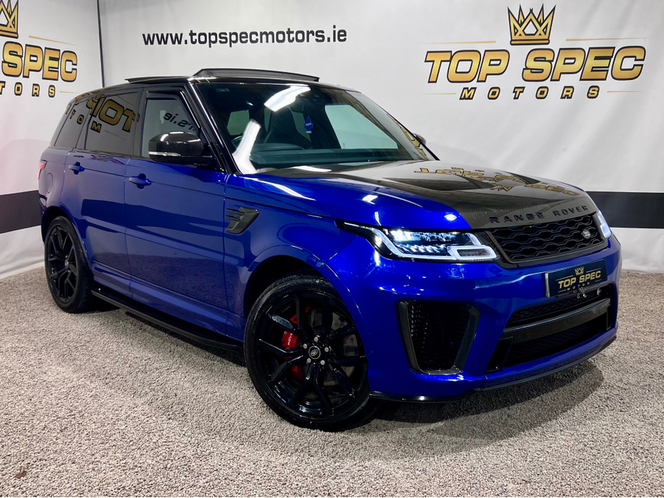 2021 Land Rover Range Rover Sport SVR Carbon Edition 5.0 P575 V8 SVR Carbon Edition Auto 4WD ABSOLUTELY FULLY LOADED CARBON EDITION WITH EVERY EXTRA FULL EXPOSED CARBON BONNET, BUMPER, MIRRORS, SIDE GRILLS,REAR BUMPER, INTERIOR TRIMS ECT. PAN SLIDING ROOF GHOST IMMOBILISER MERIDIAN SOUND SYSTEM PADDEL SHIFT UPGRADE EXHAUSTS SYSTEM FULL SERVICE HISTORY, LAST SERVICED THIS MONTH IN LANDROVER LOYNS OF LIMERICK NEW DISK AND PADS FACELIFT MODEL WITH TWIN TOUCHSCREENS FINISHED IN ESTORIL BLUE METALLIC WITH BLACK CONTRAST ROOF EXTENDED BLACK LEATHER INTERIOR 22" BLACK FACTORY SVR ALLOY WHEELS WITH 4 NEW CONTINENTAL TYRES SVR SPORTS BODYSTYLING EXTENDED CARBON TRIM WITH EXPOSED CARBON VENTED BONNET SWITCHABLE QUAD SPORTS EXHAUSTS SVR SPORTS SEATS SPORTS SUSPENSION SATELLITE NAVIGATION FRONT AND REAR PARKING SENSORS WITH VISUAL DISPLAY AND REVERSE CAMERA KEYLESS ENTRY AND GO WITH PUSH BUTTON START LED DAYTIME RUNNING LIGHTS HEATED AND CLIMATE COOLED SEATS HEATED STEERING WHEEL 2 KEYS DRIVES AS NEW FIRST TO VIEW WILL BUY Mileage only 79k with full dealer service history Can be sold as a 2 seater Commerical or 5 seater passenger,call for more info and price on this option Call sales on 0871925200 Stunning jeep in every way Strictly appointment only Check us out on Facebook for more info top spec motors and follow us on snap chat Finance & Warranty Available Top Spec Motors, Newmarket Co. Cork The prestige and performance specialists FULL 100% FINANCE CAN BE ARRANGED WITHIN 1 HOUR ARRIVE AND DRIVE THE SAME DAY Cork,s Used High Spec Car, Commercial, Motorhome and 4x4 Specialists Card Machine available on site Viewing 7 Days A Week and after 6pm to 11pm by appointment only *FREE NATIONWIDE DELIVERY ANYWHERE* From our forecourt to your front door for no extra cost Click the link below for more info Www.topspecmotors.ie Central Locking, Electric Windows, Airbag, Rear Spoiler, Centre Armrest, Multi-function steering wheel, Satellite Navigation, Traction Control, Anti-Theft System, Parking Sensors, Bluetooth, EBD, Isofix, Active Safety Braking / City Brake / Collision Alert, Stop/Start Button, Touch Screen Media Control, External Devices Connectivity, Cup holders, Remote boot/hatch/rear door release, Stability control