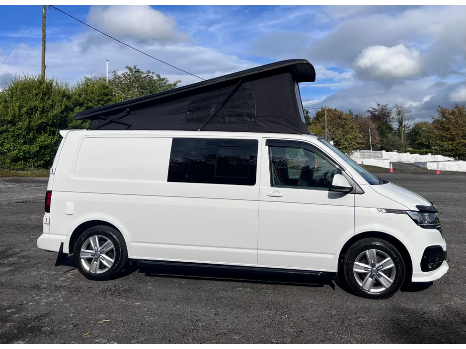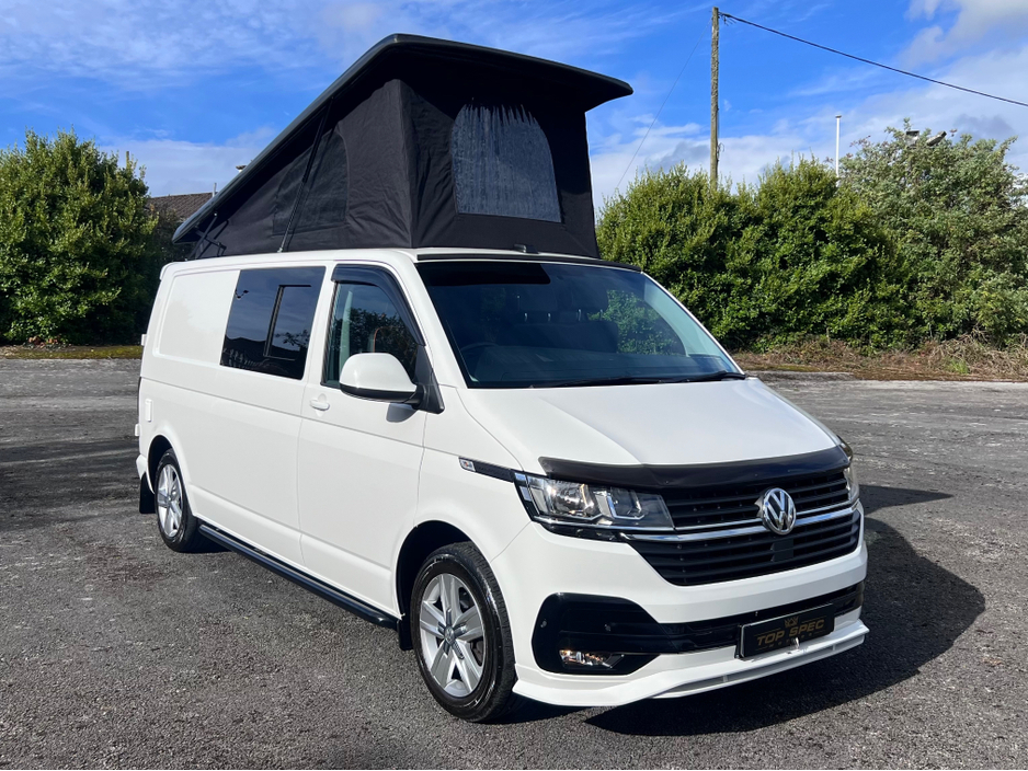 2023 VW TRANSPORTER CAMPERVAN 5-Berth Fitted options include FULL Premium pack WITH EVERY EXTRA Its ABSOLUTELY FULLY LOADED ABT Kit Business pack (Rear parking sensors, climatic air-conditioning, and an alarm) Front fog lights Bonnet guard Black back Sat nav Rotating seats Apple CarPlay Side bars Factory mud flaps Factory Colour coded bumpers Wind deflectors Full Premium Leather Front and rear Sportline style spoilers Gloss pack Pop top Portable toilet Solar panel Running water Electronic Gas and diesel heaters Sportline Alloy wheels and premium tyres Leisure batteries As part of the Startline specification, it comes with cab air-conditioning, rear parking sensors, cruise control, Multifunction steering wheel, Immobiliser, and alarm. Only 38k miles on the clock The Top spec motors conversion This camper has been newly converted. Its a brand new build The interior has a CNC machined Light Gloss Grey with red edging and Dark stone worktop. Smart TV, Netflix ect Fridge It also features the Rib 112 seat/bed system, Dometic sink and 2-burner gas hob, 12V Dometic fridge, Floor lighting 60L underslung water tank, 2 x USB ports, 2 x 240v mains sockets, undercabinets, full-length lighting strip and 2 x floor level led spotlights. 42oz Thermo-Shield Insulation (wool and felt blend). GRP twin-polycarbonate roof with aerodynamic, noise reducing front roof spoiler. Stainless steel high lift hinges on elevating roof No chipping paint or rusting Premium Cabanon roof tent with twin mesh ventilation windows and large front window Pull-down upholstered double roof bed with twin up lights for roof bed area. Fully glazed with heat insulating, privacy glass. Two sliding windows in the living area for increased ventilation and passenger comfort. Precision CNC machined furniture with multiple options of furniture finishes. Automotive quality lining with individually-lined access panels. Genuine VW panel fixings. New deeper sliding door step refreshes the look and adds a more stable footing. Sliding table and folding maximum-support leg. Premium table rails for increased strength and support. 110a Leisure battery with fitted mains distribution and charging system. 2 x USB Sockets. 2 X Mains sockets (when connected to a 230V supply). 1 touch LED and under cabinet lighting. Built-in Carbon Monoxide alarm. TV/DVD player roof mounted booster Aerial Privacy glass Long Entrance Step THE LIST GOES ON AND ON FIRST TO VIEW WILL DEFINITELY BUY ONLY ONE AVAILABLE FOR SALE IN IRELAND WITH THIS MASSIVE SPEC Call sales on 0871925200 for more info FULL FINANCE AVAILABLE Stunning camper in every way Strictly appointment only Check us out on Facebook for more info top spec motors and follow us on snap chat Top Spec Motors, Newmarket Co. Cork The prestige and performance specialists FULL 100% FINANCE CAN BE ARRANGED WITHIN 1 HOUR