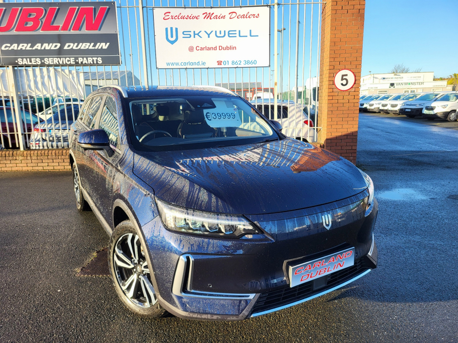This is the all new Skywell BE11 Exclusive to Carland Dublin just appointed main Skywell Dealers. Available in two Luxury models one with a 72Kwh battery with 400km of range costing €39999 inc SEAI Grant €43500 retail and 86Kwh Battery with 489km of range costing €41999 including the SEAI Grant -€3500 €45499 retail this is combined range (WLPT) Spec includes -Massive pan roof -heated and vented seats -Ambient lighting 128 colours -Rear privacy -Razor LED Headlights -19" Diamond cut alloys -12.8"Touch screen display -Motion sense Power tailgate -Heated Autofold mirrors -Rear spoiler -Premium suede/faux leather seats -8 speaker Metz sound system -Metz underfloor subwoofer -6 way Elec front seats -Rear A/C ventalation -Leather Multifunction steering wheel -Bluetooth/DAB radio -wireless smartphone connectivity -Intelligent entry/central locking -Premium metallic paint work -360 panoramic parking camera -parking sensors Front and rear -8yr battery warranty-250k kms Stunning new SUV from Skywell @Carland Dublin
