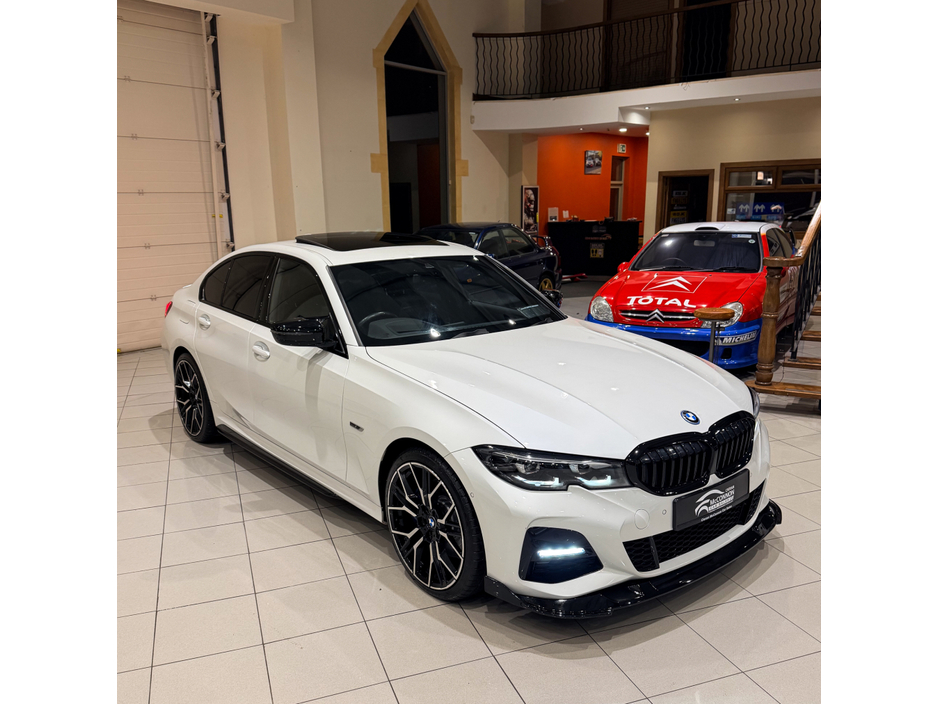 HUGE SPEC PRO PACK SUNROOF HARMON - KARDON HEATED STEERING WHEEL At Cieran Mc Connon Car Sales we are delighted to offer for sale this exceptional - 2021 (212) BMW 330e M-SPORT PRO PACK 290BHP which is finished off in the every sought after "Pearl White" paintwork which is tastefully contrasted with optional extra 20" upgraded alloy wheels. Sunroof Heated steering wheel Harmon/Kardon Blue upgrade brake system Full gloss black lip kit Electric upgrade seating M-Sport branding pack Pro Pack lip spoiler Extended front splitter Indv. high-gloss shadowline- extended I-Drive system Professional Sat-Nav Bluetooth Digital cockpit Air-Con USB/AUX connectivity Park distance control Ambient lighting package & so much more! PLEASE NOTE OPTIONAL EXTRA ALLOYS ARE SOLD AT €1250 OR CAN BE SOLD ON ORIGINAL ALLOYS Central Locking, Electric Windows, Airbag, Fog Lamps, Centre Armrest, Multi-function steering wheel, Satellite Navigation, Traction Control, Anti-Theft System, Parking Sensors, Bluetooth, EBD, Isofix, Active Safety Braking / City Brake / Collision Alert, Stop/Start Button, External Devices Connectivity, Cup holders, Remote boot/hatch/rear door release, Stability control