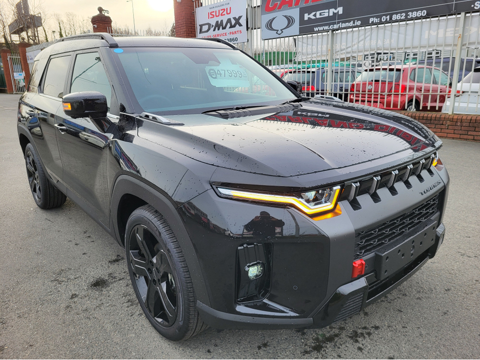 Exclusive All new KGM Torres 1.5 petrol self charging Hybrid now available at Carland Dublin Main KGM Dealers Dublin 8 year 150k kms battery warranty. Massive spec stunning finish in the black metallic with black/rose gold interior Comes with huge spec like heated/cooled seats heated steering wheel Heated rear seats, 20" Diamond cut alloy wheels roof rails 360 camera system ,infotainment system apple/android hook up LED headlamps lots of safety features like lane departure/blind spot warning/Anti collision etc..703 Litres of boot space and 1662 litres with the seats folded Call to arrange a test drive 01-8623860 Ext 1 (sales) download a brochure www.carland.ie €47999 on the road competitive finance packages available trade ins considered. -Stock id 119346 Air Conditioning, Central Locking, Immaculate condition, Electric Windows, Airbag, Alarm, Alloy Wheels, Cruise Control, Electric Mirrors, Electric Seats, Fog Lamps, Immobiliser, Leather Upholstery, Full Leather, Privacy Glass, Heated Seats, Automatic Wipers, Automatic Lights, Centre Armrest, Multi-function steering wheel, Climate Control, Metallic Paint, Multiple Air Bags, Anti-Theft System, Bluetooth, Brand New Tyres, EBD, Electronic handbrake, Folding rear seats, Isofix, Hill holder, Apple Car Play, Android Auto, Keyless Entry, Heated Front Seats, Heated Rear Seats, Reversing Camera, Front Parking Sensors, Lane Departure Warning, Blind Spot Monitoring System, Autonomous Drive / Pilot Assist, Active Safety Braking / City Brake / Collision Alert, Adaptive Cruise Control, Stop/Start Button, Driver Fatigue Warning, Drive Mode Selector, Daytime Running Lights, 2 Keys, Cup holders