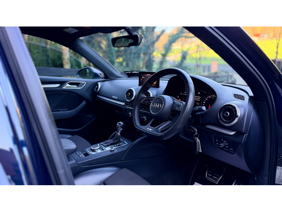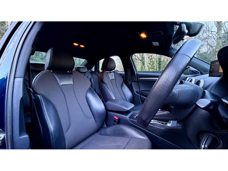 At Cieran Mc Connon Car Sales we are pleased to offer for sale this immaculate 2019 (191) Audi A3 2.0TDI AUTO Saloon 150BHP which is finished in the ever stunning Kosmoblau mettalic paintwork & has just been fitted with a brand new gloss black lip kit consisting of Front splitter Side blade extensions Rear lip spoiler This example also benefits from a full Audi history portfolio as well as having the timing belt & waterpump replaced by Audi in 2024. If you are looking for a proper example of an Audi A3 saloon, with the desired 2.0TDI 150BHP engine, matched with the seamless auto gearbox & all the history to back it up, this is for you. Please note 19 optional extra alloys as shown in the photograph are sold at an additional €950 or can be sold on the original alloys. Central Locking, CD Player, Electric Windows, Airbag, Cruise Control, Centre Armrest, Multi-function steering wheel, Traction Control, Metallic Paint, Parking Sensors, Bluetooth, EBD, Isofix, Apple Car Play, Android Auto, Active Safety Braking / City Brake / Collision Alert, Stop/Start Button, External Devices Connectivity, Cup holders, Remote boot/hatch/rear door release, Stability control