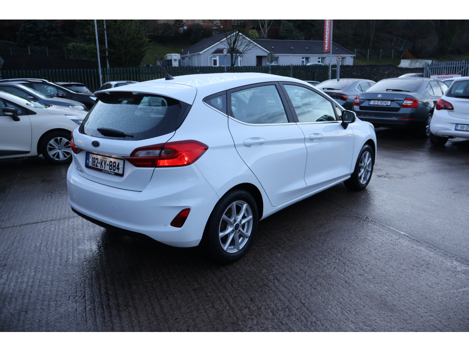 Interior Images Coming Soon.... Low Finance Rates Available! Apply @ www.mcnamaramotors.ie This low mileage Ford Fiesta Titanium (Original Irish Car)is in exceptional condition both inside and out. The previous lady owner has maintained this car to the highest of standards. The Titanium model is equipped with a huge spec which reverse park sensors, includes air con, cruise control, climate control, Apple Carplay, Android Auto, 6 speed gearbox and much more. This car will be supplied fully serviced with a 24 month NCT, 2 keys, a car history report and is also covered by our dealer warranty. For further details please contact McNAMARA MOTORS located on the Commons Road, Blackpool, Cork City. (between the Commons Inn and McDonald's Drive Thru) More pictures available at www. mcnamaramotors. ie Air Conditioning, Central Locking, Electric Windows, Airbag, Alloy Wheels, Cruise Control, Electric Mirrors, Fog Lamps, Immobiliser, Rear Spoiler, Multi-function steering wheel, Traction Control, Multiple Air Bags, Anti-Theft System, Parking Sensors, Bluetooth, Remote Central Locking, EBD, Folding rear seats, Isofix, History Checked, Finance Checked, Apple Car Play, Android Auto, Reversing Camera, Active Safety Braking / City Brake / Collision Alert, Stop/Start Button, 2 Keys, External Devices Connectivity, Cup holders, Remote boot/hatch/rear door release, Stability control
