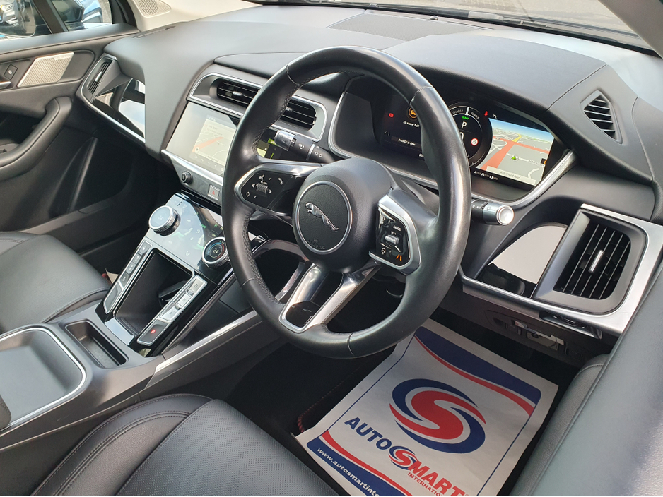 2020 JAGUAR I-PACE EV400S AUTOMATIC FULLY ELECTRIC NCT 01/28 FINANCE AVAILABLE @ €90 PER WEEK, COMES WITH - FULL SERVICE HISTORY - PAN ROOF - FULL LEATHER - HEATED SEATS - HEATED STEERING WHEEL - APPLE CAR PLAY/ ANDROID AUTO - TOUCH SCREEN MEDIA - SAT NAV - BLUETOOTH - USB - REVERSE CAMERA - MULTI FUNCTION STEERING WHEEL - ELECTRIC WINDOWS AND MIRRORS - AUTO LIGHTS AND WIPERS - HISTORY CHECKED *ALL CARS ARE ADVERTISED WITH A FRESH NCT. WE GUARANTEE ALL CARS A NCT PASS. WE MAKE THE BOOKING AND COVER ANYTHING THE CAR FAILS ON.* ** OWN THIS CAR FOR LESS THAN €90 PER WEEK OVER 60 MONTHS / 5 YEARS WITH A €1990 DEPOSIT** OUR GOOGLE MAPS LOCATION CAN BE FOUND HERE ---- https//maps.app.goo.gl/cb4jecBYL2djBnkc7 HERE AT DELTA CAR SALES WE AIM TO INSTILL AS MUCH CONFIDENCE AS POSSIBLE IN OUR CUSTOMERS WHEN BUYING A USED CAR. FAMILY RUN BUSINESS ESTABLISHED IN THE MOTOR TRADE OVER 20 YEARS OPERATING FROM THE SAME PREMISES. ALL OUR VEHICLES COME WITH PARTS AND LABOUR WARRANTY A FRESH NCT AND ARE FULLY SERVICED AND CHECKED PRIOR TO LEAVING OUR FORECOURT TO ASSURE OUR CUSTOMERS OF THE HIGHEST QUALITY. FOR ANY MORE INFORMATION PLEASE CONTACT OUR SALES TEAM ON THE DETAILS BELOW OR DROP INTO OUR NAAS ROAD SHOWROOM. TEL 01-4565236 MOB 087-6003867 Central Locking, Electric Windows, Airbag, Rear Spoiler, Centre Armrest, Multi-function steering wheel, Satellite Navigation, Traction Control, Metallic Paint, Anti-Theft System, Parking Sensors, Bluetooth, EBD, Isofix, Active Safety Braking / City Brake / Collision Alert, Touch Screen Media Control, External Devices Connectivity, Cup holders, Remote boot/hatch/rear door release, Stability control