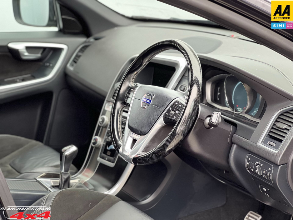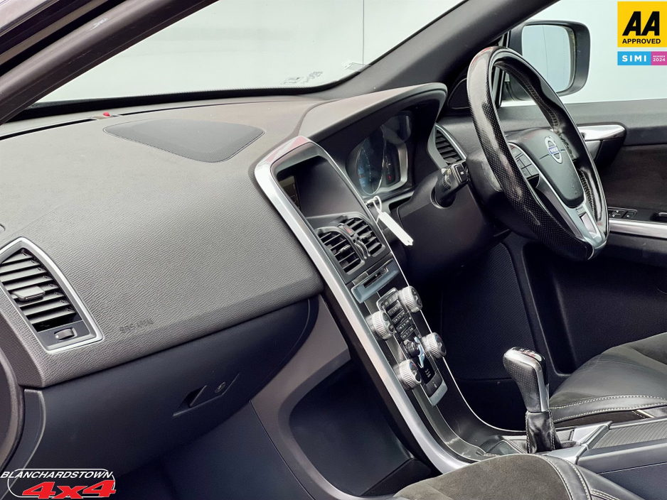 WELCOME TO BLANCHARDSTOWN4x4.COM D15 TV04 FAMILY RUN BUSINESS Est. 2000 2014 Volvo XC60 D4 R-Design Sporty Elegance Meets Practicality 6-Speed Manual Black Exterior Half Leather Interior Immaculate Condition R-Design Sport Package Aggressive styling, 19" alloy wheels, sport chassis, dual exhausts, and R-Design badging. Stunning Black Exterior Sleet Black metallic paint with sleek R-Design grille and body kit. Half Leather Interior Premium charcoal black upholstery with contrasting stitching, sport seats, and R-Design steering wheel. 6-Speed Manual Transmission Rare manual gearbox for driving enthusiasts seeking full control. Efficient D4 Diesel Engine 181 HP, 400 Nm torque, AWD capability, and exceptional fuel economy. Volvo Safety Tech City Safety collision avoidance, BLIS (Blind Spot Monitoring), 6 airbags, and WHIPS whiplash protection. BLANCHARDSTOWN4x4 warranty This 2014 Volvo XC60 D4 R-Design combines rugged SUV practicality with sporty sophistication. Finished in Black metallic and equipped with the sought-after R-Design package it stands out with its muscular stance, sculpted body kit, and signature LED daytime running lights. Inside, the half leather interior offers a refined yet sporty ambiance, featuring heated front seats, dual-zone climate control, and sleek aluminium inlays. Modern conveniences include a 7" Sensus infotainment system, Bluetooth, cruise control, and a panoramic sunroof. Powered by Volvos robust 2.0L D4 turbo-diesel engine this SUV delivers punchy acceleration and effortless overtaking, paired with Volvos intelligent AWD system for all-weather confidence. The 6-speed manual transmission adds an engaging driving experience rarely found in premium SUVs. FINANCE ARRANGED Central Locking, Electric Windows, Airbag, Centre Armrest, Multi-function steering wheel, Roof Rails, Traction Control, Metallic Paint, Anti-Theft System, Bluetooth, EBD, Isofix, Active Safety Braking / City Brake / Collision Alert, Stop/Start Button, External Devices Connectivity, Cup holders, Remote boot/hatch/rear door release, Stability control