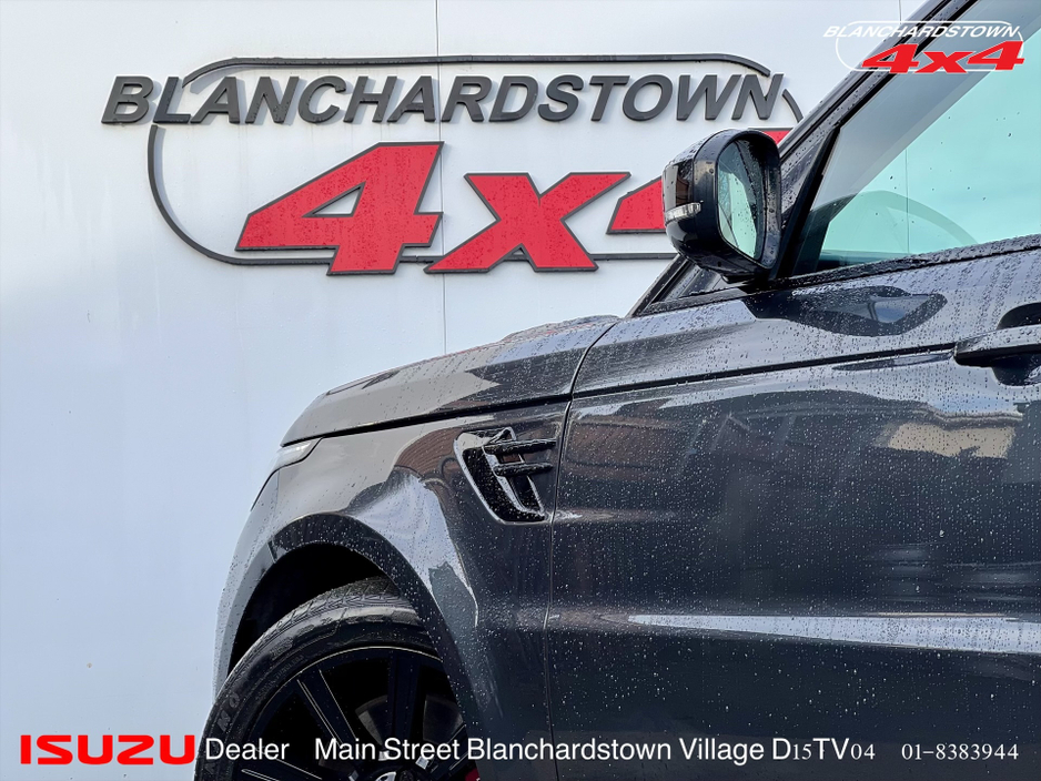 WELCOME TO No.1 ISUZU DEALER BLANCHARDSTOWN4x4.COM D15 TV04 FAMILY RUN BUSINESS Est. 2000 ALL YOUR BUSINESS NEEDS AT BLANCHARDSTOWN4X4.COM ALWAYS ONE STEP AHEAD 191 Range Rover Sport HSE 404hp Luxury Redefined Unmatched Sophistication. Uncompromising Performance. Glide in timeless style with the sleek Grey exterior radiating confidence on every road. Step into a sanctuary of luxury with Beige Leather Seats handcrafted perfection that pampers you mile after mile. PHEV Power meets efficiency. Meridian Sound System Low Mileage Pristine condition, meticulously maintained. HSE Premium Trim Heated seats, advanced terrain response, and cutting edge tech. This Range Rover Sport above & beyond Whether conquering city streets or untamed trails, it delivers refinement, capability, and exclusivity. RANGE ROVER SPORT ABOVE AND BEYOND At BLANCHARDSTOWN4x4 we specialise in creating tailored car finance solutions designed to put prestige vehicles within reach. Whether youre considering a ISUZU, BMW, Mercedes-Benz, Audi, or Land Rover, our bespoke packages are crafted with flexibility, discretion, and value in mind. - Hire Purchase (HP) Straightforward ownership with fixed monthly payments - Personal Contract Purchase (PCP) Low monthly costs with flexible end-of-term options - Lease & Balloon Options Ideal for drivers who value upgrading regularly Specialist in LCV & prestige cars Competitive rates Fast approvals Discreet and professional support throughout Whether youre a business professional, company director, or private individual, well ensure your next car purchase is as smooth and rewarding as the drive itself. . Central Locking, Electric Windows, Airbag, Cruise Control, Fog Lamps, Rear Spoiler, Centre Armrest, Multi-function steering wheel, Satellite Navigation, Traction Control, Anti-Theft System, Parking Sensors, Bluetooth, EBD, Isofix, Active Safety Braking / City Brake / Collision Alert, Stop/Start Button, Touch Screen Media Control, External Devices Connectivity, Cup holders, Remote boot/hatch/rear door release, Stability control