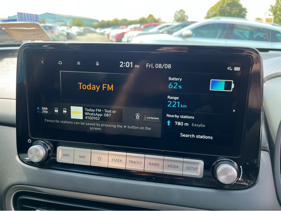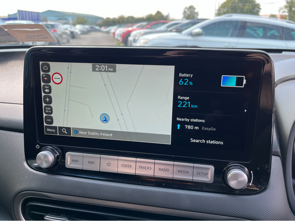 KEY NUMBER 22 JUST ARRIVED!! This HYUNDAI KONA PRIMIUM EV 64KWH ELECTRIC.. In stunning condition inside and out.. A fantastic car to drive.. It comes with a huge spec including.. Call ANDREW RYAN for more info on Ph 0851259422 or email andrewryan@evramotors.ie - Heated Seats and Steering Wheel - Digital Drivers Display - Reverse Camera - Parking Sensors - Wireless Phone Charging - Blind Spot Warning - Keyless Entry/Start - Android/Apple Carplay - Adaptive Cruise Control - Sat Nav - Media Touch Screen - Air Con - Bluetooth - Multi Function Steering Wheel ***TAX €120 PER YEAR*** Here at Evra Motors we have a friendly knowledgeable sales team with over 20 years experience in the business. We are proud to be an AA Approved dealer with peace of mind as standard. We aim to stock a wide range of over 300 carefully selected premium AA Approved used cars all sourced directly from main dealerships here in Ireland. We aim to supply all our cars at the most competitive prices in the country. Extended warranty available on certain makes and models. Delivery can be arranged throughout the country. Each of our retail cars comes with a detailed history report and fully serviced or health checked by our in house service team of mechanics, a valid NCT will be provided and every car will be valeted prior to collection. Tailored finance packages available. We are open 6 days a week. For more information on our cars please contact ANDREW RYAN on Ph 0851259422 or email andrewryan@evramotors.ie Due to a high turnover in stock we recommend that you contact our sales team to make sure the car is still available and to make an appointment.