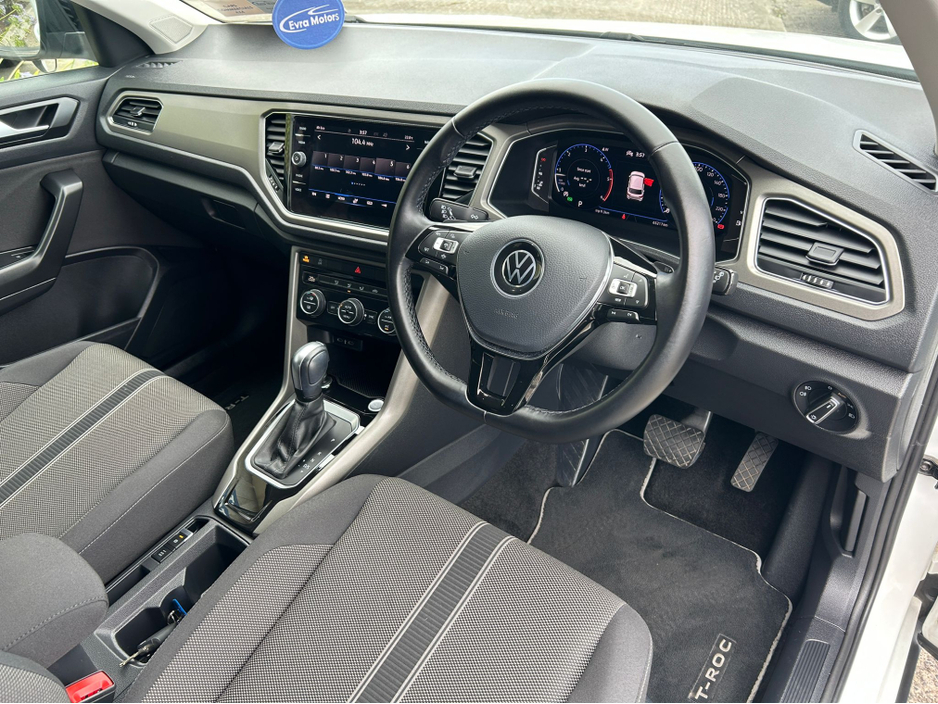 JUST ARRIVED!! This VW T-ROC STYLE AUTOMATIC 2.0 DIESEL.. In stunning condition inside and out.. A fantastic car to drive.. It comes with a huge spec including.. Call Mark for more info on Ph 083 303 6593 or email mark@evramotors.ie - Reverse Camera - Parking Sensors - Digital Drivers Display - Bluetooth - Android/Apple Carplay - Adaptive Cruise Control - Power Tailgate - Keyless Entry/Start - Alloys - Multi Functional Steering Wheel - Electric Windows - Air Con **NEW NCT INCLUDED** Here at Evra Motors we have a friendly knowledgeable sales team with over 20 years experience in the business. We are proud to be an AA Approved dealer with peace of mind as standard. We aim to stock a wide range of over 300 carefully selected premium AA Approved used cars all sourced directly from main dealerships here in Ireland. We aim to supply all our cars at the most competitive prices in the country. Extended warranty available on certain makes and models. Delivery can be arranged throughout the country. Each of our retail cars comes with a detailed history report and fully serviced or health checked by our in house service team of mechanics, a valid NCT will be provided and every car will be valeted prior to collection. Tailored finance packages available. We are open 6 days a week. For more information on our cars please contact Mark on Ph 083 303 6593 or email mark@evramotors.ie Due to a high turnover in stock we recommend that you contact our sales team to make sure the car is still available and to make an appointment.
