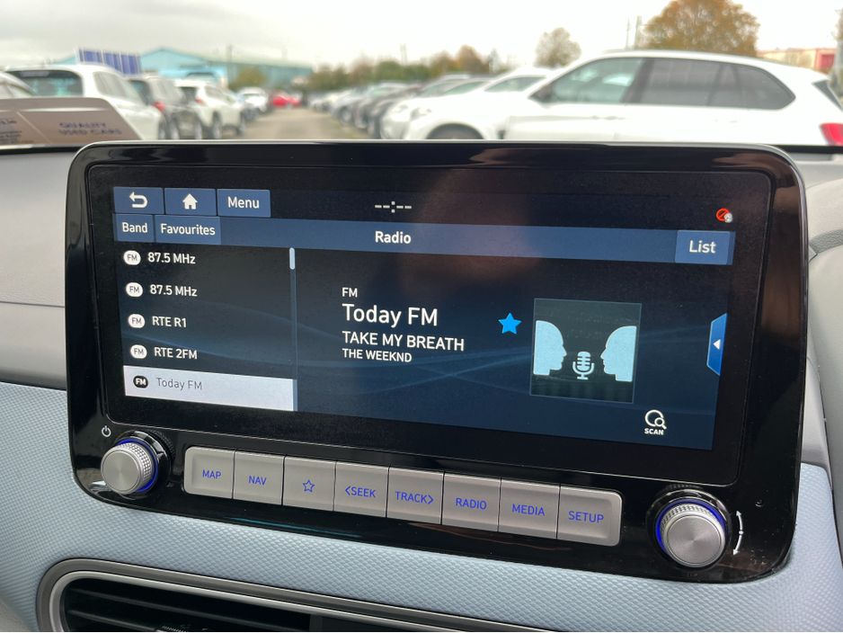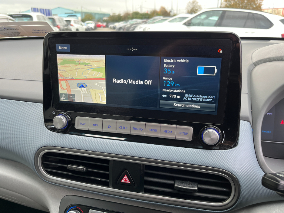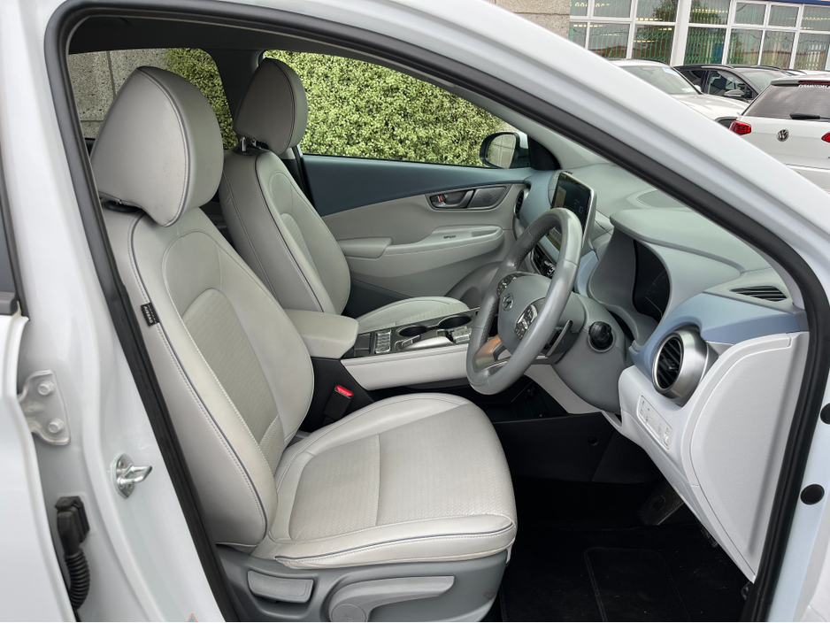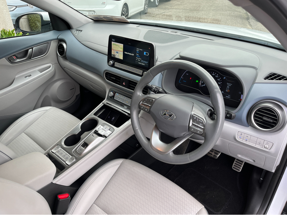 JUST ARRIVED!! This HYUNDAI KONA KAUAI EV PREMIUM 64KWH.. In stunning condition inside and out.. A fantastic car to drive.. It comes with a huge spec including.. Call ANDREW RYAN for more info on Ph 0851259422 or email andrewryan@evramotors.ie - Full Leather Seats - Heated Seats and Steering Wheel - Reverse Camera - Parking Sensors - Android/Apple Carplay - Krell Sound System - Cruise Control - Sat Nav - Keyless Entry/Start - Wireless Phone Charging - Media Touch Screen - Air Con - Bluetooth - Multi Function Steering Wheel ***NCT 05/27***TAX €120 PER YEAR*** Here at Evra Motors we have a friendly knowledgeable sales team with over 20 years experience in the business. We are proud to be an AA Approved dealer with peace of mind as standard. We aim to stock a wide range of over 300 carefully selected premium AA Approved used cars all sourced directly from main dealerships here in Ireland. We aim to supply all our cars at the most competitive prices in the country. Extended warranty available on certain makes and models. Delivery can be arranged throughout the country. Each of our retail cars comes with a detailed history report and fully serviced or health checked by our in house service team of mechanics, a valid NCT will be provided and every car will be valeted prior to collection. Tailored finance packages available. We are open 6 days a week. For more information on our cars please contact ANDREW RYAN on Ph 0851259422 or email andrewryan@evramotors.ie Due to a high turnover in stock we recommend that you contact our sales team to make sure the car is still available and to make an appointment.