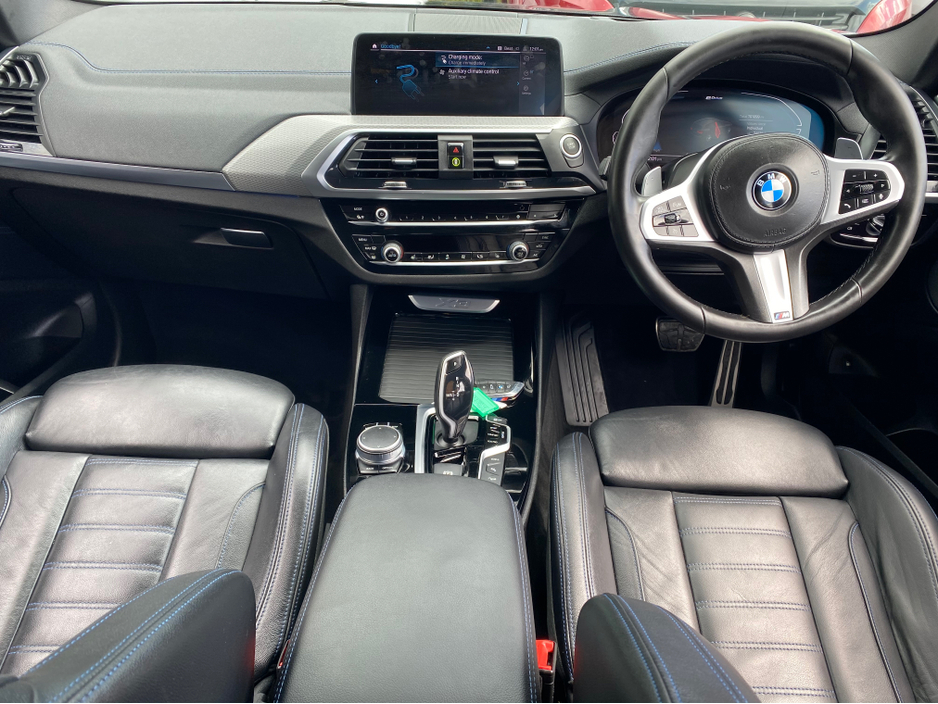 2021 - 211 BMW X3 2.0 XDRIVE 30E M-SPORT 288BHP , 1 OWNER, 2 KEYS,FULL LEATHER INTERIOR,HEATED SEATS,SAT NAV,HEADS UP DISPLAY,REAR PARKING CAMERA, PARKING SENSORS,SOLD FULLY SERVICED WITH NEW NCT, PRICE INCLUDES VRT AND WARRANTY !! FINANCE ARRANGED PROMPT DECISION,FULL SPEC CAR IN EXCELLENT CONDITION IN SIDE AND OUT,CALL 0599147619 TO ARRANGE A VIEWING AND A TEST DRIVE , SUITABLE TRADE IN TAKEN . 38,800 TRADE IN PRICE . Central Locking, Electric Windows, Airbag, Fog Lamps, Rear Spoiler, Full Leather, Heated Seats, Centre Armrest, Multi-function steering wheel, Roof Rails, Satellite Navigation, Traction Control, Anti-Theft System, Parking Sensors, Bluetooth, EBD, Isofix, Reversing Camera, Active Safety Braking / City Brake / Collision Alert, Stop/Start Button, Cup holders, Remote boot/hatch/rear door release, Stability control