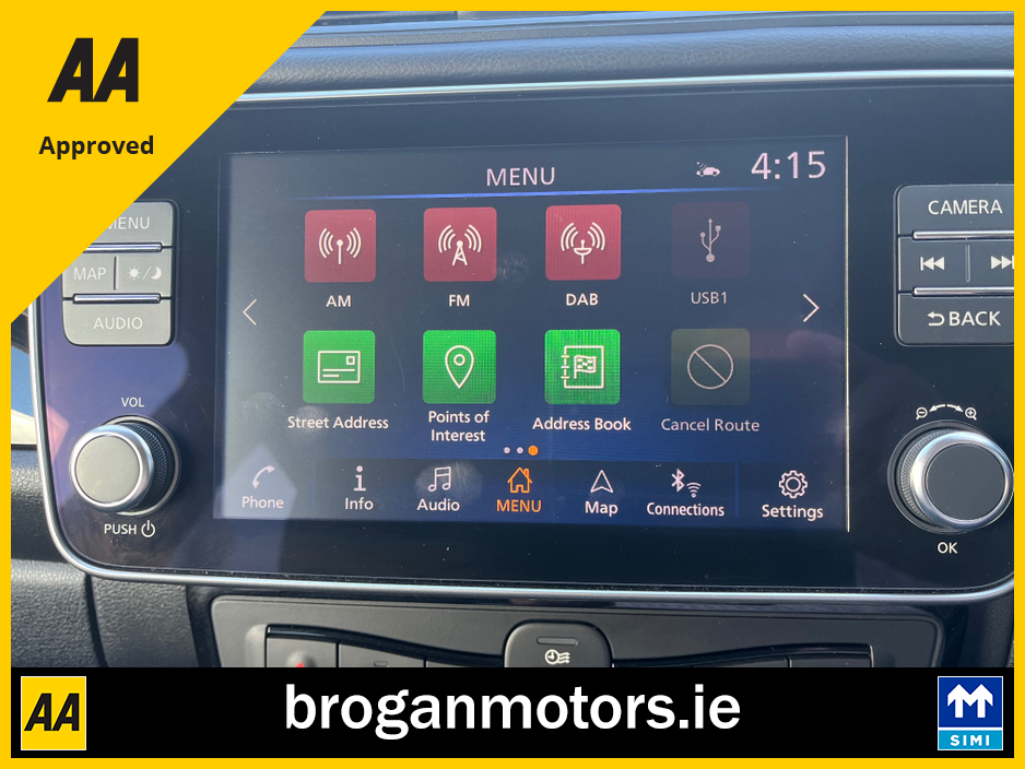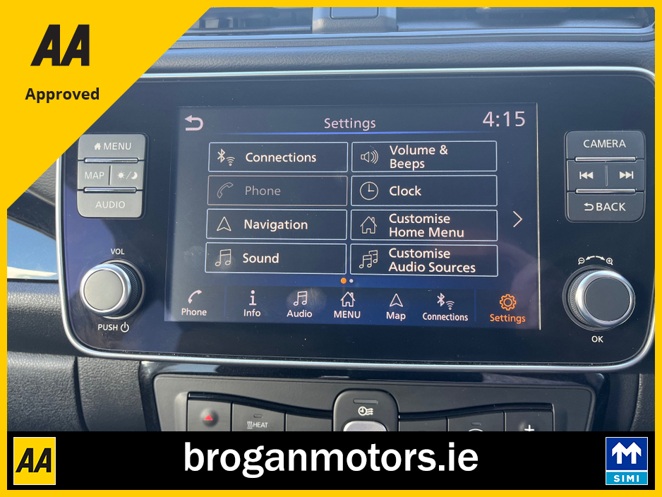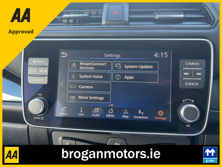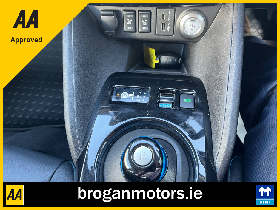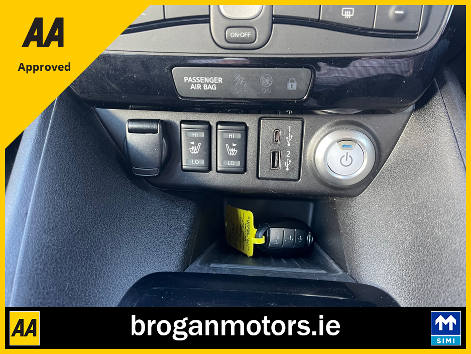 At Brogan Motors Baldonnell, we pride ourselves on the quality of our cars and outstanding aftersales service. We offer competitive and affordable finance packages to suit your needs, and trade-ins are welcome. As a SIMI-approved dealer, we provide a Motorcheck/Cartell history report for your peace of mind. Visit our showroom, 5 minutes from the Red Cow on the N7, to experience the 2022 Nissan leaf EV, With credit/laser card facilities and a 6-month warranty included, your purchase is secure and convenient. Discover the perfect blend of performance, style, and reliability at Brogan Motors Baldonnell today. Air Conditioning, Central Locking, Full Service History, Immaculate condition, Perfect working order, Electric Windows, Airbag, Alloy Wheels, Cruise Control, Electric Mirrors, Fog Lamps, Immobiliser, Leather Upholstery, Rear Spoiler, Half Leather, Privacy Glass, Centre Armrest, Multi-function steering wheel, Climate Control, Satellite Navigation, Traction Control, Multiple Air Bags, Anti-Theft System, Parking Sensors, Bluetooth, Remote Central Locking, EBD, Folding rear seats, Isofix, Roadside assistance, History Checked, Finance Checked, Heated Front Seats, Reversing Camera, Active Safety Braking / City Brake / Collision Alert, Heated Steering Wheel, Touch Screen Media Control, Dual Zone Climate Control, 2 Keys, External Devices Connectivity, Cup holders, Stability control