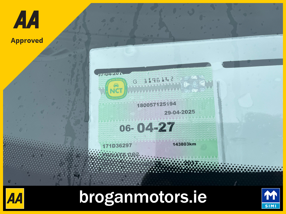 *****New Clutch Fitted******Welcome to Brogan Motors Baldonnell. Here, we take great pride in the quality of our cars and after-sales service. When you choose to purchase a vehicle from us, rest assured that you will receive outstanding customer service every step of the way. We offer competitive and affordable finance packages that can be arranged during your visit, making the process seamless and stress-free. Trade-ins are always welcome here at Brogan Motors Baldonnell as we strive to make your car-buying experience as convenient as possible. As a SIMI dealer, we adhere to strict standards of excellence in all business operations. Our indoor showroom is conveniently located only 5 minutes from the Red Cow on the N7, making it easy for you to browse our selection of vehicles in person. We provide Motorcheck/CarTell history reports with every purchase for added confidence and peace of mind. With a credit/laser card facility and easy finance arrangements, choosing Brogan Motors Baldonnell ensures a smooth and enjoyable car-buying experience with a trusted SIMI-approved dealer in 2026 Central Locking, Immaculate condition, Perfect working order, Electric Windows, Airbag, Fog Lamps, Immobiliser, Privacy Glass, Centre Armrest, Multi-function steering wheel, Roof Rails, Satellite Navigation, Traction Control, Metallic Paint, Multiple Air Bags, Anti-Theft System, Parking Sensors, Bluetooth, Remote Central Locking, EBD, Isofix, History Checked, Active Safety Braking / City Brake / Collision Alert, Stop/Start Button, External Devices Connectivity, Cup holders, Remote boot/hatch/rear door release, Stability control