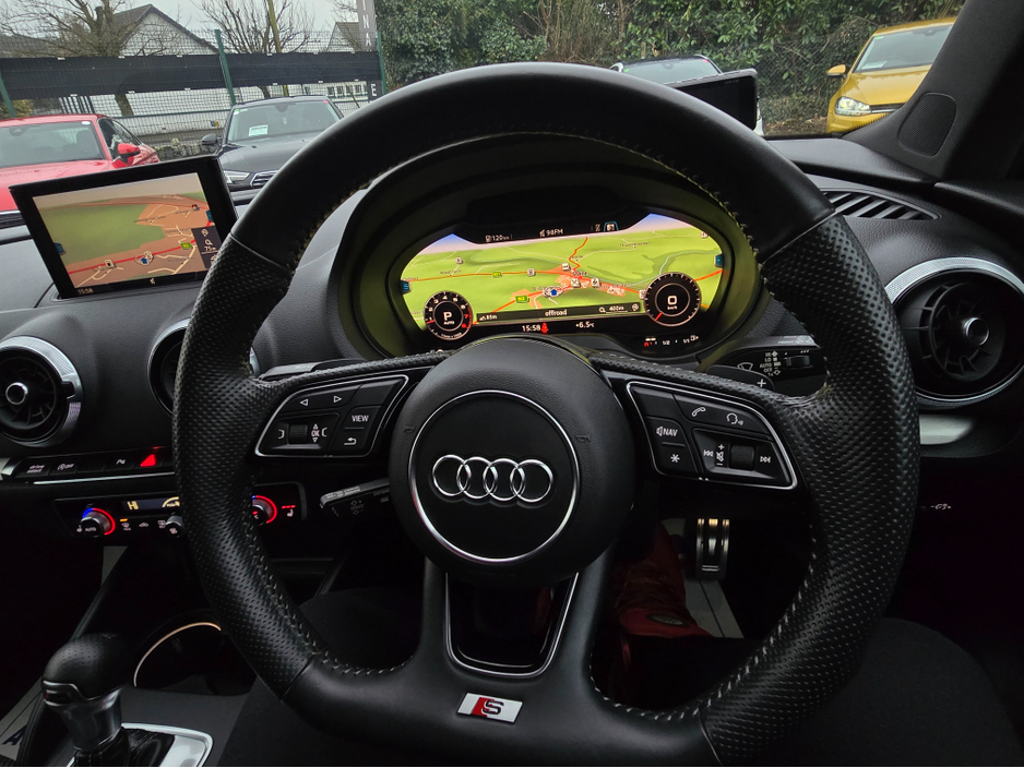 STUNNING AUDI A3 1.4 S LINE EDITION VIRTUAL DIGITAL COCKPIT CARPLAY ANDROID AUTO - SATNAV -- NAVIGATION REVERSING CAMERA -BLIND SPOT - PARKING SENSORS Dont miss out and contact Robert 0852057300 or Dave 0872884146. EAST COAST CARS SIMI MAIN DEALER - SPECIALISING IN GERMAN VW / AUDI / MERCEDES AUTOMATIC PETROL AND HYBRID MODELS // Dont miss out and contact Robert 0852057300 or Dave 0872884146. CREDIT CARD SECURES DEPOSIT ** We look forward to hearing from you and helping you find the car of your dreams. At East coast cars our goal is to provide all cars at a price that won't be beaten and to a standard second to none. We try and operate a no-haggle system where all our cars are already at the lowest possible price. Every car undergoes a 360 degree fully comprehensive car check by our in-house service team. This will include A full service. Warranty. Full vehicle preparation. Fresh NCT pass. We are proud to say that have a fantastic score card with Google reviews Safety, Reliability & Customer satisfaction are at the core of what we do. All Air Conditioning, Central Locking, CD Player, Immaculate condition, Electric Windows, Airbag, Alarm, Alloy Wheels, Cruise Control, Electric Mirrors, Electric Seats, Immobiliser, Leather Upholstery, Half Leather, Privacy Glass, Heated Seats, Automatic Wipers, Automatic Lights, Centre Armrest, Multi-function steering wheel, Roof Rails, Climate Control, Satellite Navigation, Traction Control, Metallic Paint, Multiple Air Bags, Xenon Lights, Anti-Theft System, Parking Sensors, 6 Month Warranty, Trade in accepted, Bluetooth, Remote Central Locking, Electronic handbrake, Sun blinds, Isofix, Hill holder, History Checked, Finance Checked, Apple Car Play, Android Auto, Heated Front Seats, Reversing Camera, Front Parking Sensors, Lane Departure Warning, Blind Spot Monitoring System, Active Safety Braking / City Brake / Collision Alert, Stop/Start Button, Drive Mode Selector, Dual Zone Climate Control, Daytime Running Lights, Cup holders