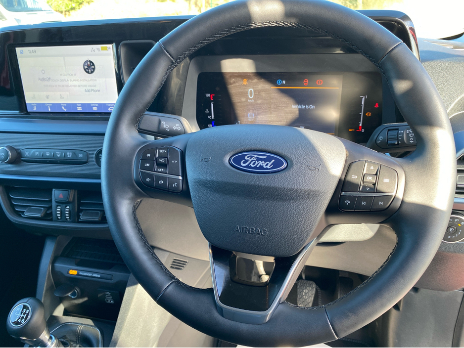 €23950 plus VAT, 5 years Ford Warranty, Floor liner, Spare wheel, LED Compartment lights, Wireless phone charger, Roof rails Adjustable steering wheel, Air Conditioning, Alloy Wheels, Arm rests, Bluetooth, Bulkhead (full), Hill Start Assist, MP3 Compatible CD Player, Manufacturers warranty, Multi Function Steering Wheel Controls, Parking Sensors