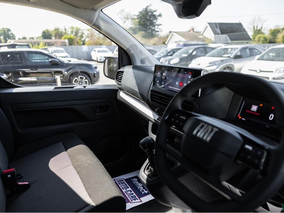 **PRICE EXCLUDES VAT/VRT** Neary's Lusk - Fiat - Jeep - Fiat Professional The Fiat Scudo is truly versatile and the best choice for a van when you are looking for a spacious 3-seater van for different applications. The Fiat Scudo is available as a diesel manual, diesel automatic or fully electric. The dimensions of the luggage compartment of the Fiat Scudo allow a volume of up to 6.6 m3 and its maximum load capacity reaches up to 1200 kg. With the new Scudo, it feels like driving a car, as its comfortable driving position and compactness allow for a stress-free working day even on longer journeys. Thanks to the new Moduwork function, you will find all the options for customizing the interior according to your needs. The new Scudo offers plenty of space and loading solutions that adapt to any situation. Call Conor or Noah on 01-8437100 for sales or email sales@nearyslusk.ie ABS, Air Conditioning, Air bags, Alarm, Bluetooth, Bluetooth/Tel, Body Coloured Bumpers and Mirrors, Bulkhead (full), Central locking, Cruise control, Disc brakes, Door - Twin side door, Driver Airbag, Electric mirrors, Electric windows, Manufacturers warranty, Multi Function Steering Wheel, Rear Parking Sensors, Remote Central Locking