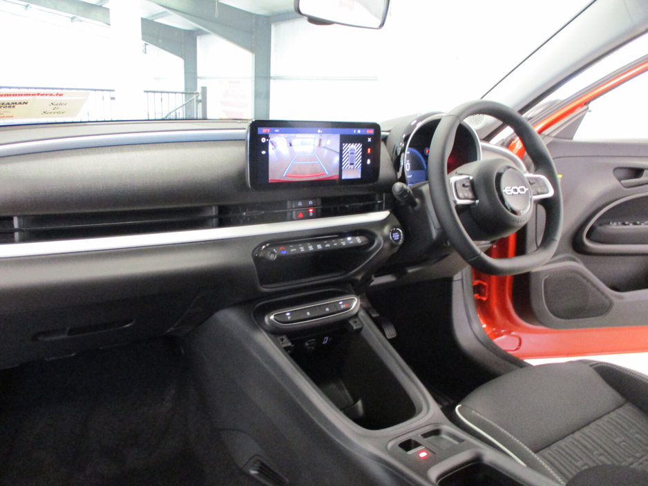 NEW 261 OFFERS- 3.9% Finance on PCP Full Range 4.9% Finance on HP Full Range 5 Year Extended Warranty 3 Year Service Plan •17" Alloy Wheels Diamond Cut •Antitheft Locknuts •Foldable & Heated, Power Door Mirrors with Auto Folding Function & Puddle Light FUNCTIONALITY ONBOARDTECHNOLOGY •Automatic A/C, Single Zone •6 Speaker Audio System •Cargo Flex Kit •Front, Rear & Side Parking Sensor •Passive Entry •Rear View Camera with Dynamic Gridlines •Urban Blind Spot Monitor 1.2 100hp Hybrid eDCT 6 Powertrain Hybrid MVS 364.B23.1.N03 Transmission eDCT6 Fuel Type Petrol Hybrid Drive Type FWD CO2 emission Combined (g/km) 109 g / km WLTP Fuel Consumption Combined (l/100km) TBC l / 100km Total RRP €30,995 Standard Upholstery Black Recycled Fabric Seat Upholstery with Fiat Monogram Standard Wheel 17” Alloy Wheels Diamond Cut DOLCE VITA HYBRID STANDARD EQUIPMENT Air conditioning, Climate control, Armrest, Keyless entry, Electric side mirrors, Electric handbrake, Multi-function steering wheel, Rain sensor, Split rear seats, Android Auto, Apple CarPlay, Bluetooth, Touch screen display, USB connection (front), Cruise control, Navigation system, Parking camera, Front parking sensors, Rear parking sensors, Remote boot release, Roof rails, Speed limiter, Start-stop system, Traffic sign recognition, Voice control, Parking assistance, Digital instrument panel, Alloy wheels, Leather steering wheel, Spoiler, Sports seats, Fog lights, ABS, Anti collision system, Alarm system, Emergency brake assist, Central locking, Remote central locking, Driver-side airbag, Immobilizer, Isofix, Tyre pressure monitor, Passenger-side airbag, Seat belt warning, Side airbag, Stability control, Traction control