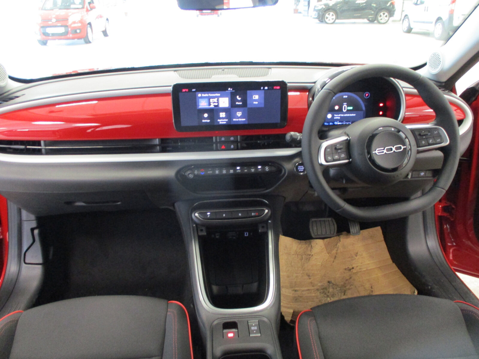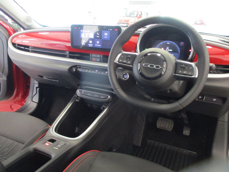 NEW 261 OFFERS: 3.9% Finance on PCP Full Range 4.9% Finance on HP Full Range 5 Year Extended Warranty 3 Year Service Plan •7” TFT Full Digital Cluster •16" Steel Wheels with Covers •10.25” DAB Radio with USB Type A+C •LED Rear Lights •12V Socket •LED Reflector Headlamps •Black Recycled Fabric Seat Upholstery with Fiat Monogram •Power Door Mirrors Grained Design •B-pillar Glossy Black •Foldable 2nd Row Seats 40/60 •Front Central Armrest •Front Seat Backrest Pocket (Driver/Passenger) •Internal Door Handles Chrome •Manual Day/Night Rearview Mirror •Synthetic Leather Steering Wheel FUNCTIONALITY ONBOARDTECHNOLOGY •Cruise Control •4 Speaker Audio System •Driver Seat 6-Way Manual Adjustments •Antitheft Volumetric •Electric Parking Brake with Auto Hold •Connectivity Services •Front Passenger Seat 4-Way Manual Adjustments •Ecall Emergency Response System •Front/Rear Power Windows Express Up/Down •Pedestrian Emergency Breaking •Keyless Start •Manual A/C, Single Zone •Paddle Shift •Rain Sensor •Rear Parking sensors Air conditioning, Armrest, Keyless entry, Electric side mirrors, Electric windows, Electric handbrake, Multi-function steering wheel, Rain sensor, Split rear seats, Android Auto, Apple CarPlay, Bluetooth, Radio, Touch screen display, USB connection (front), Cruise control, Navigation system, Rear parking sensors, Remote boot release, Roof rails, Traffic sign recognition, Voice control, Parking assistance, Digital instrument panel, Spoiler, Sports seats, Fog lights, ABS, Alarm system, Emergency brake assist, Central locking, Remote central locking, Driver-side airbag, Immobilizer, Isofix, Tyre pressure monitor, Seat belt warning, Side airbag, Stability control, Traction control, Emergency tyre repair kit