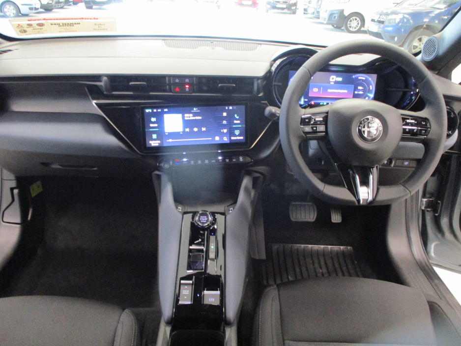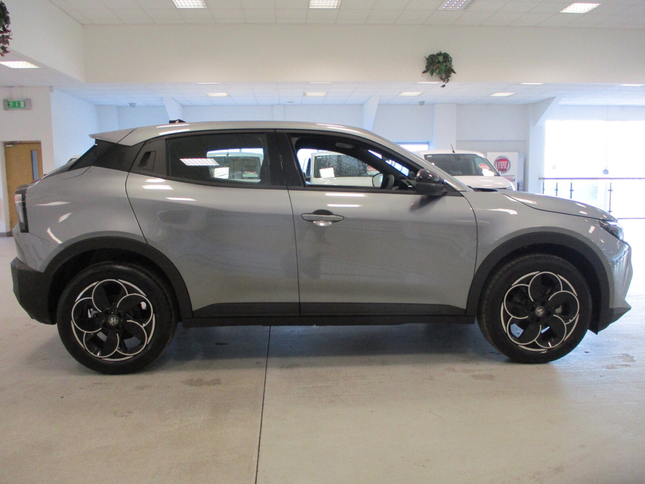 NEW 261 OFFERS: 3.9% Finance on PCP Full Range 4.9% Finance on HP Full Range 5 Year Extended Warranty 3 Year Service Plan ALFA ROMEO JUNIOR ELETTRICA STANDARD EQUIPMENT Interior Exterior • Synthetic Leather Steering Wheel • 18" Aero Alloy Wheels - Diamond Cut • Manual Day / Night Rearview Mirror • Leggenda Scudetto V-Shield • Iconica Fabric Seats • Power Door Mirrors • Driver Seat with 6 Way Manual Adjust • LED Rear Lights • Passenger Seat with 4 Way Manual Adjust • LED Headlamps (Eco Innovation) • 10.25" “Cannocchiale” customisable Colour Digital Cluster • Body Colour Exterior Door Handles • 10.25" Radio - with Wireless Smartphone Mirroring • Gloss Black Mirror Covers) • 4 Speakers Sound System • Front and Rear Dome Lamps • Ambient Lighting (Air Vents, Instrument Cluster & Central Tunnel) Functionality On Board Technology • Automatic Air Conditioning, Single Zone • Adaptive Cruise Control • Mode 3 Cable Three-Phase • Lane Departure Warning • Antitheft Volumetric Alarm • VRU Road User Recognition (Incl. In AEB) - Pedestrian + Cyclist • Keyless Start • Drive Mode Selector • Electrically Adjustable Door Mirrors • Rear Parking Sensors • BEV Interior Vibe Sound • 11Kw On Board Charger + Heat Pump • Drive Mode Selector Air conditioning, Armrest, Keyless entry, Electric side mirrors, Electric windows, Electric handbrake, Multi-function steering wheel, Rain sensor, Split rear seats, Android Auto, Apple CarPlay, Bluetooth, 12v power outlet, Radio, Touch screen display, USB connection (front), Adaptive cruise control, Cruise control, Navigation system, Rear parking sensors, Remote boot release, Speed limiter, Traffic sign recognition, Voice control, Parking assistance, Digital instrument panel, Alloy wheels, Spoiler, Fog lights, ABS, Anti collision system, Alarm system, Central locking, Remote central locking, Driver-side airbag, Immobilizer, Isofix, Lane departure warning, Tyre pressure monitor, Passenger-side airbag, Seat belt warning, Side airbag, Stability control, Traction control, Sport suspension
